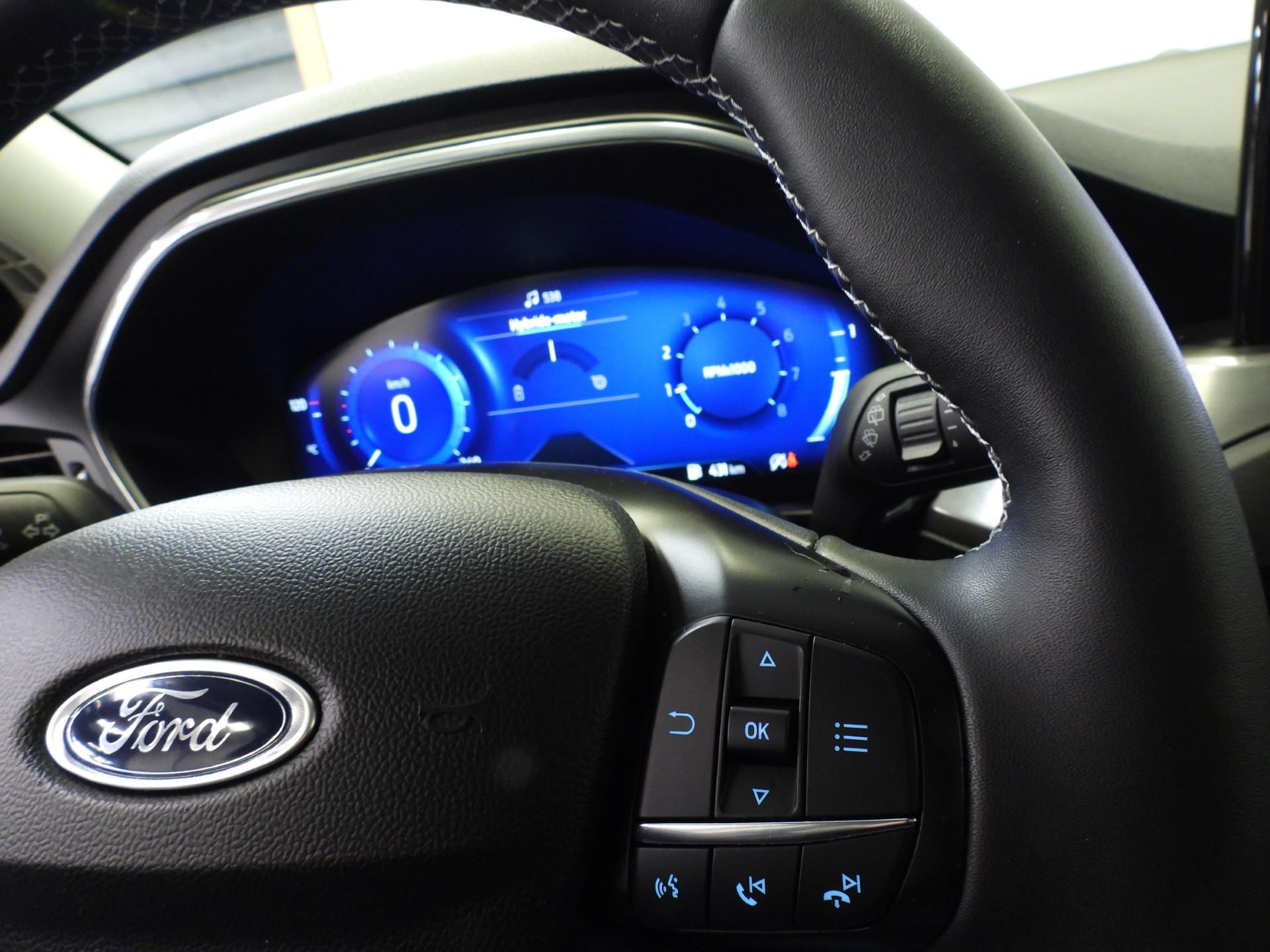 Over het digitale dashboard is goed nagedacht. Alle belangrijke functies binnen en buiten in één oogopslag. Boem is ho? Dat is verleden tijd. De achteruitrijcamera laat precies zien hoeveel ruimte u achter nog heeft! Spraaksturing betekent dat u verschillende functies met uw stem kunt bedienen. Locatie, motorconditie, storingen... via Connected Services krijgt u alle vitale info over de auto door. Ook handig bij pech! Van A naar B zonder omwegen: altijd uw eigen full map navigatiesysteem aan boord! De Ford is standaard voorzien van: climate control, audiobediening op het stuur, DAB ontvangst, regensensor, cruise control en keyless entry.