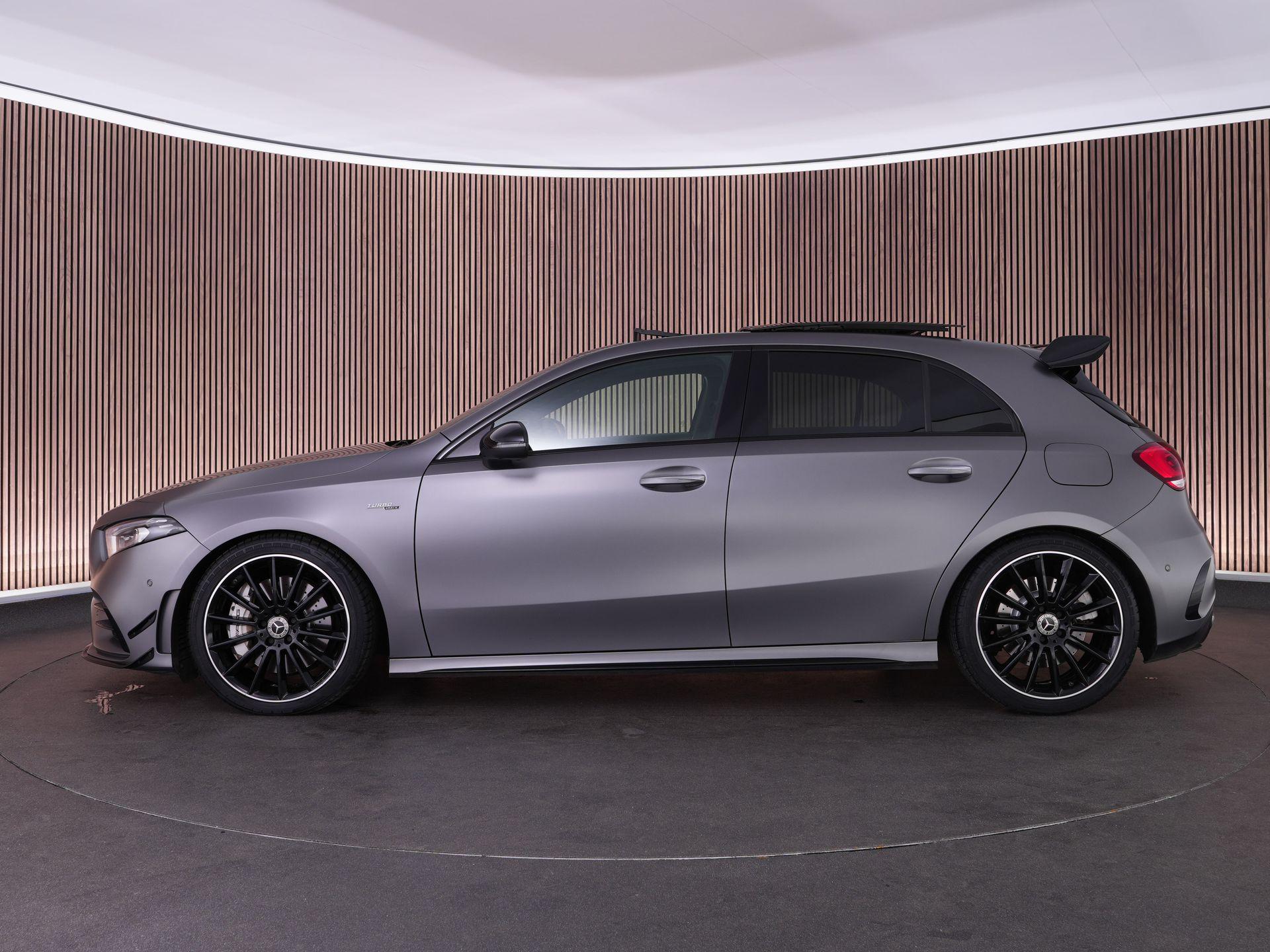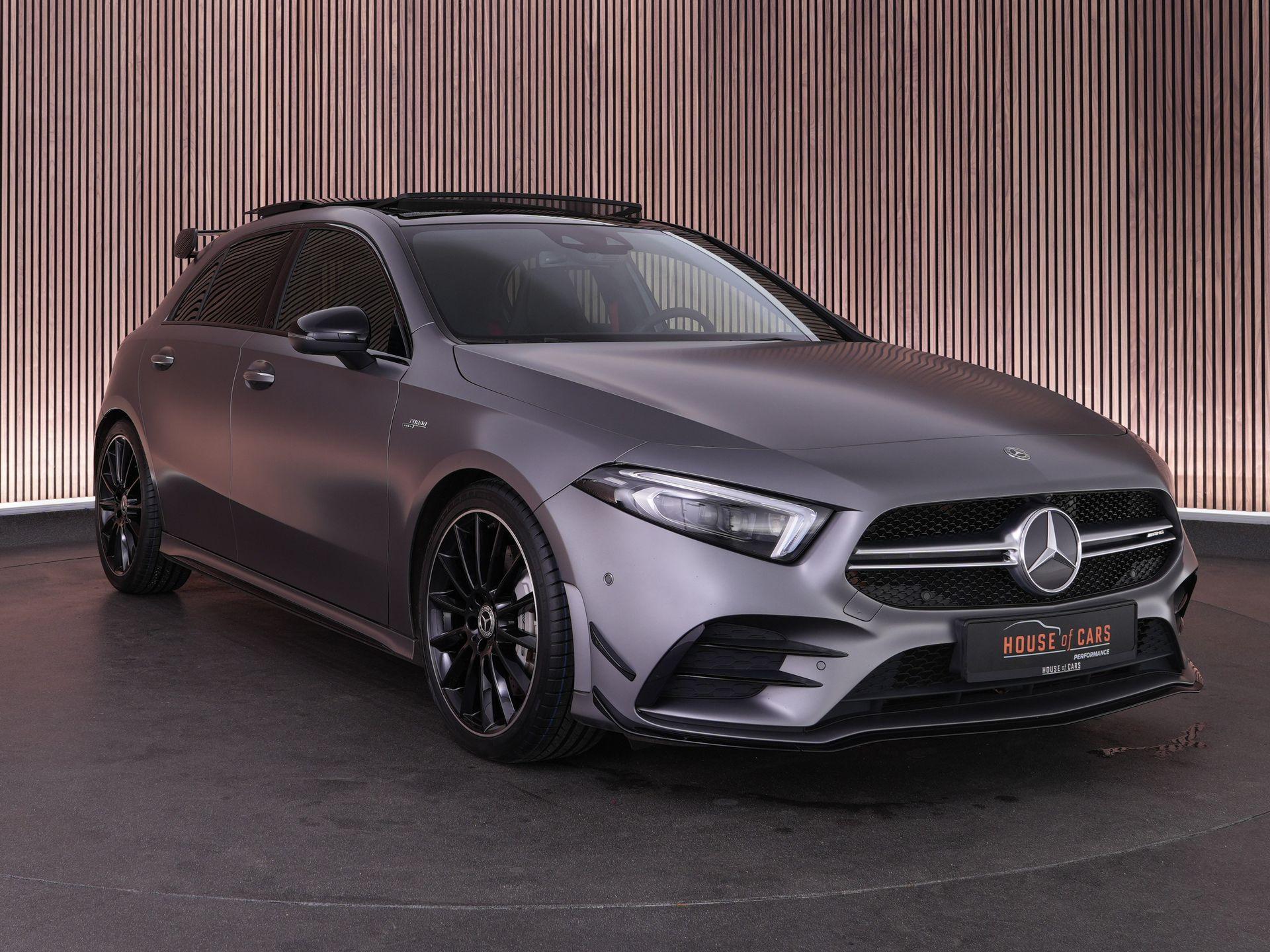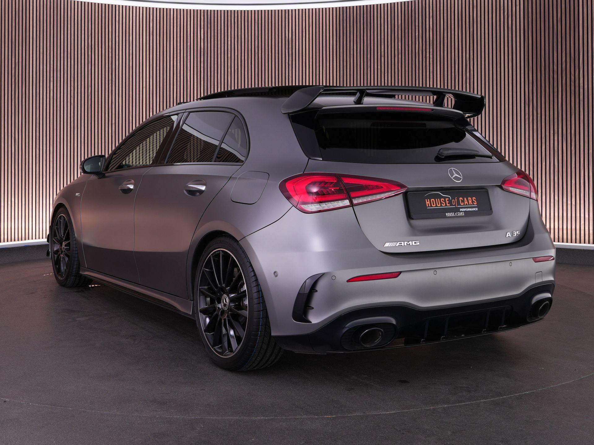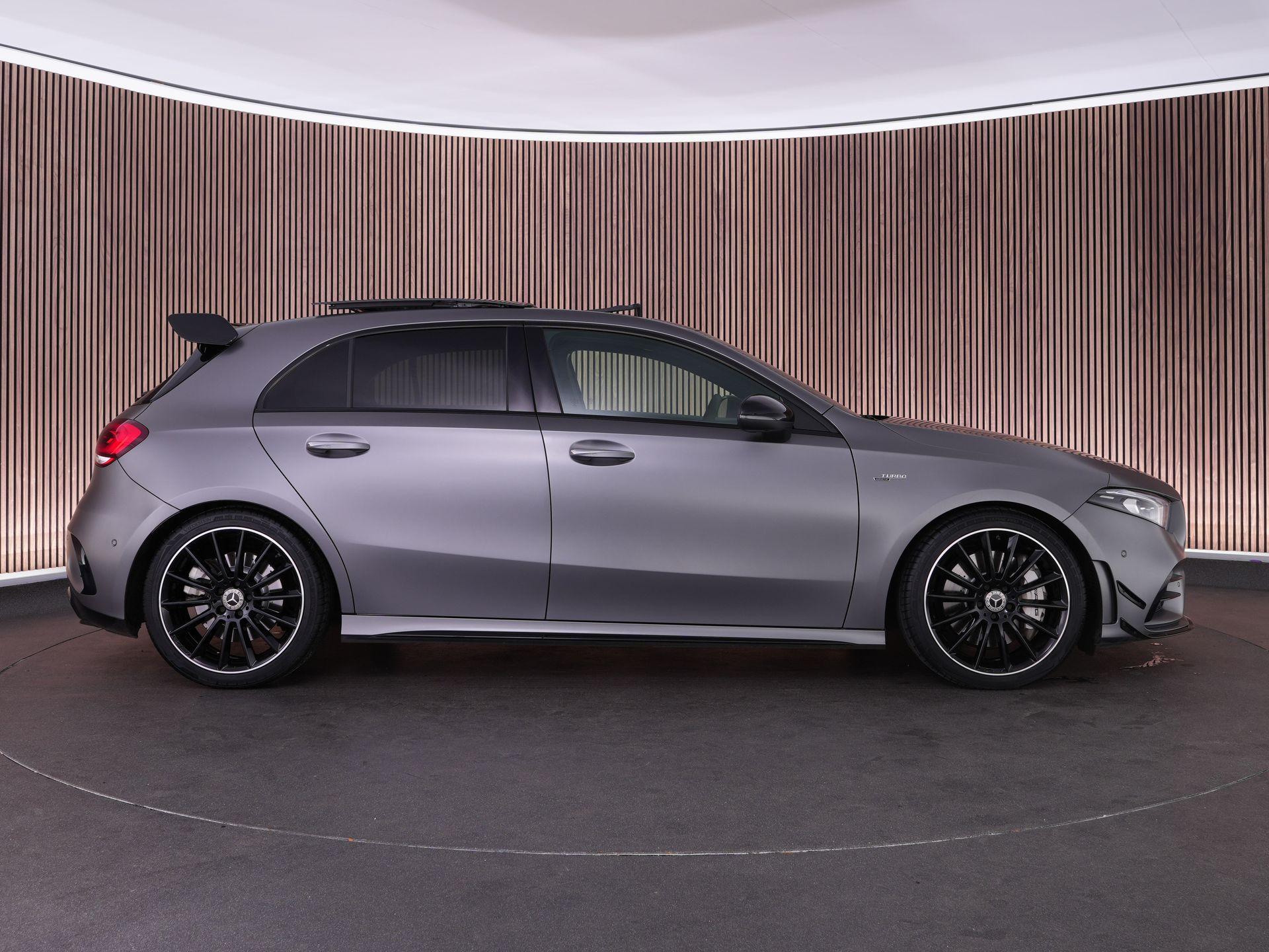 Deze Mercedes A 35 AMG 4MATIC combineert pure performance met dagelijkse gebruiksvriendelijkheid. Uitgevoerd in de exclusieve Mountain Grey Magno lak en voorzien van het AMG Aerodynamics- en Nightpakket oogt hij compact, gespierd en klaar om te presteren.