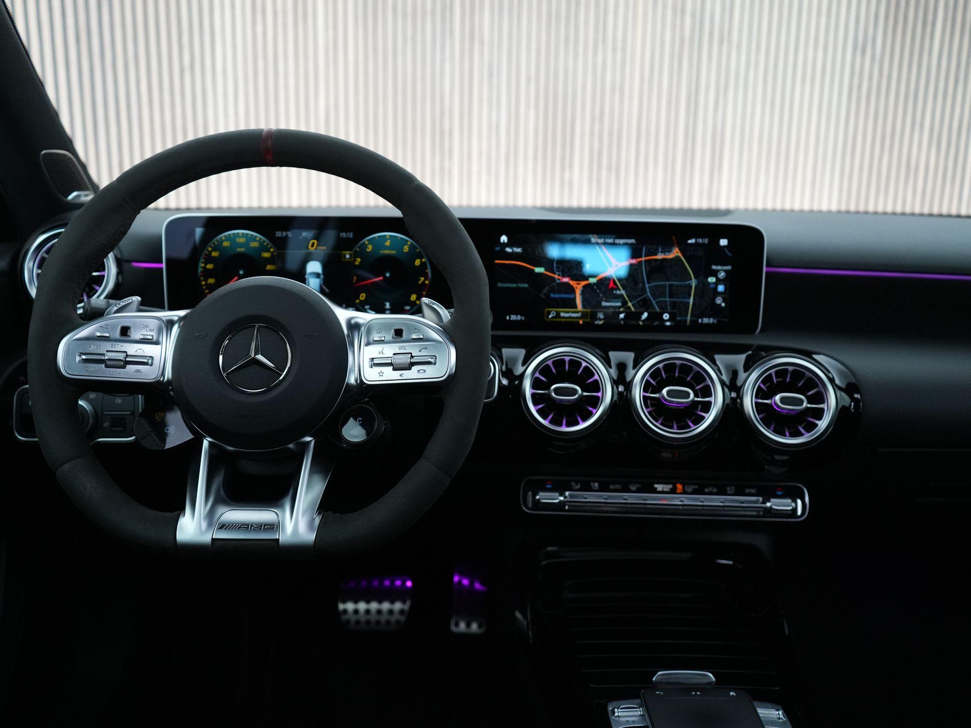 Qua comfort en technologie is deze A 35 voorzien van vrijwel alles wat je kunt wensen: panoramadak, draadloos opladen, Head-up display met Augmented Reality navigatie, premium sound system, stoelverwarming, 360° camera en Keyless-Go. De multicontourstoelen met geheugenfunctie zorgen voor het perfecte zitcomfort – of je nu op het circuit rijdt of gewoon richting kantoor.