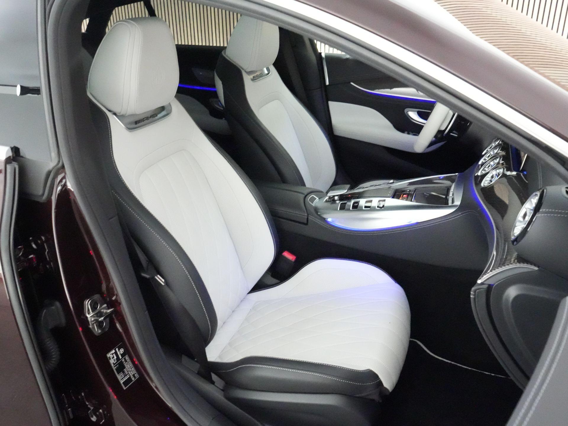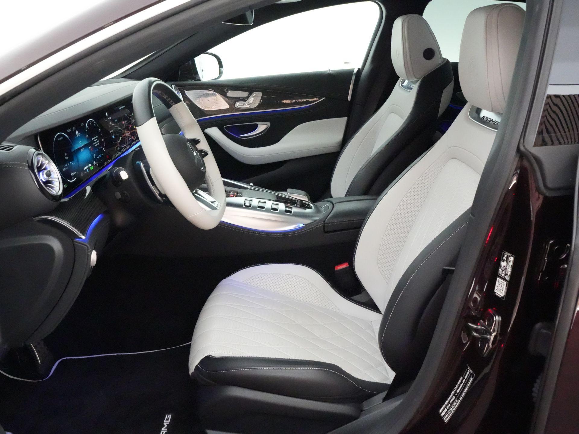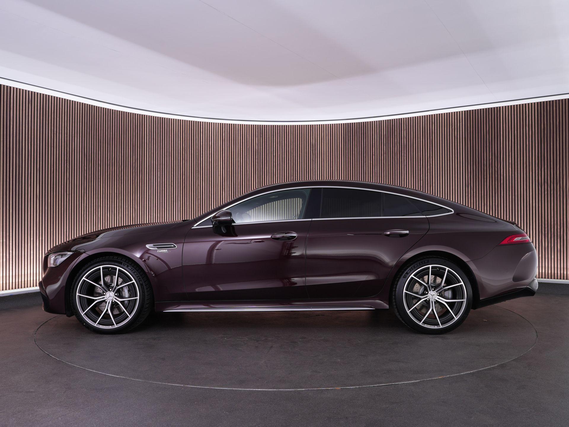 Deze AMG GT 43 is uitgevoerd in de schitterende metallic lak Rubellite Red – een diepe, luxe kleur die onder verschillende lichtomstandigheden prachtig verandert van toon. Het contrast met het lichtgrijze interieur zorgt voor een bijzonder stijlvolle en elegante uitstraling, waarmee deze auto zich duidelijk onderscheidt van de massa.