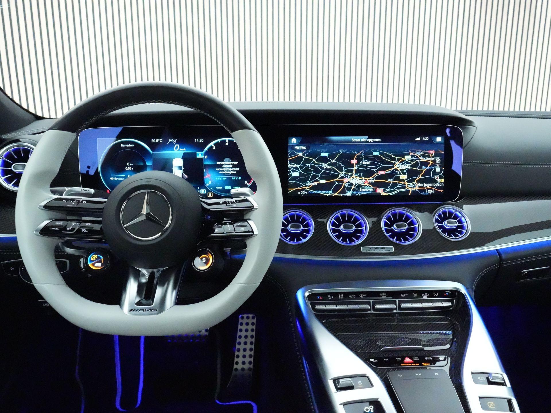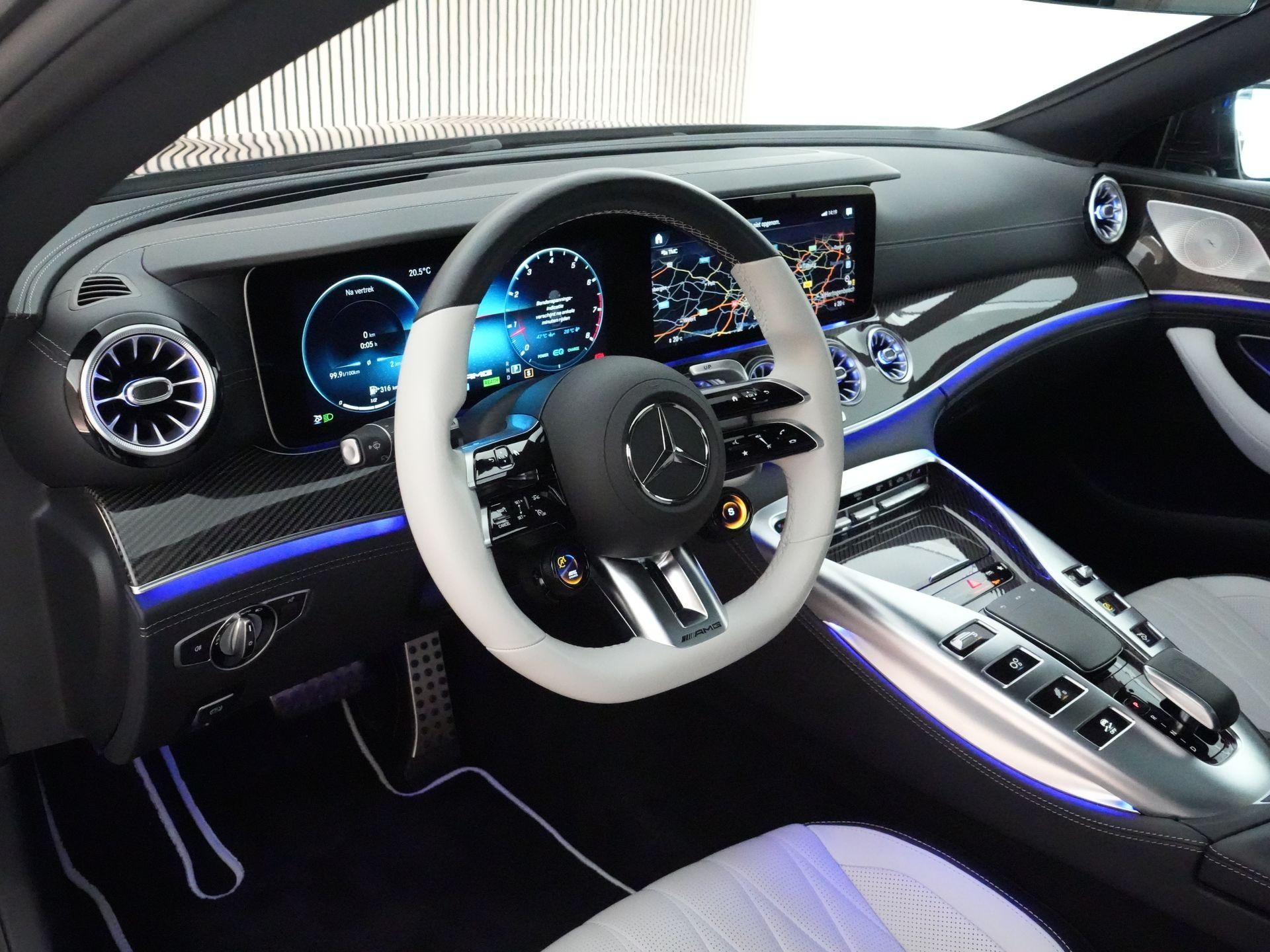 De Mercedes-AMG GT 4-Door Coupé 43 is de perfecte combinatie van sportieve pure performance en dagelijkse luxe. Onder de motorkap huist een 3,0 litre inline-6 turbo met mild-hybride ondersteuning die 367 pk en 500 Nm koppel levert — daarmee sprint hij in ca. 4,9 seconden van 0 naar 100 km/u en haalt hij een topsnelheid van ca. 270 km/u. Met het all-wheel-drive systeem (AMG 4MATIC+), een 9-traps automaat, adaptieve vering en krachtige remmen levert deze GT 43 een rijervaring die zowel comfortabel als opwindend is.
