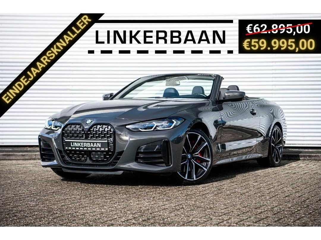 Eindejaarsknaller: van €62.895 voor €59.995. Schitterende BMW M440i Cabrio gehuld in ‘Dravitgrau’ met een ‘Dakota Schwarz’ lederen interieur. Aan fijne opties geen gebrek: 19 inch wielen, Stuurwielverwarming, Stoelverwarming, Nekverwarming, Alarmsysteem klasse 3 & 5, Driving Assistant Professional, Parkeerhulpsysteem Plus, Head Up display, Trekhaak, Sfeerverlichting, Laserlicht en ga zo maar door. Afkomstig van de eerste eigenaar, origineel Nederlands geleverd, een maagdelijke kilometerstand en helemaal klaar voor de volgende liefhebber dan wel liefhebster. Hopelijk tot snel in Harderwijk!