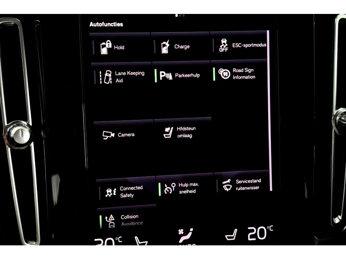 De standkachel is een ideale optie voor de koude maanden. U stapt altijd in een voorverwarmde auto en hoeft nooit meer ruiten te krabben. Altijd de benodigde functies in beeld? Het digitale dashboard zorgt ervoor. Omdat u nou eenmaal geen ogen in uw achterhoofd heeft, is het altijd lastig om achteruit te rijden zonder brokken te maken. De achteruitrijcamera lost dat probleem op. Hoe is het met de banden, de accu en andere onderdelen? Connected Services maakt het inzichtelijk, 24/7 via de app. Met het Harman/Kardon Premium HiFi Surround Soundsysteem geniet u van muziek zoals die bedoeld is. En dan is deze auto ook nog eens voorzien van dashboard met spraakbediening, in dashboard opgenomen Volvo Sensus Navigatiesysteem, WIFI-hotspot, achteropkomend verkeer waarschuwing en kruisend verkeer detectie.
