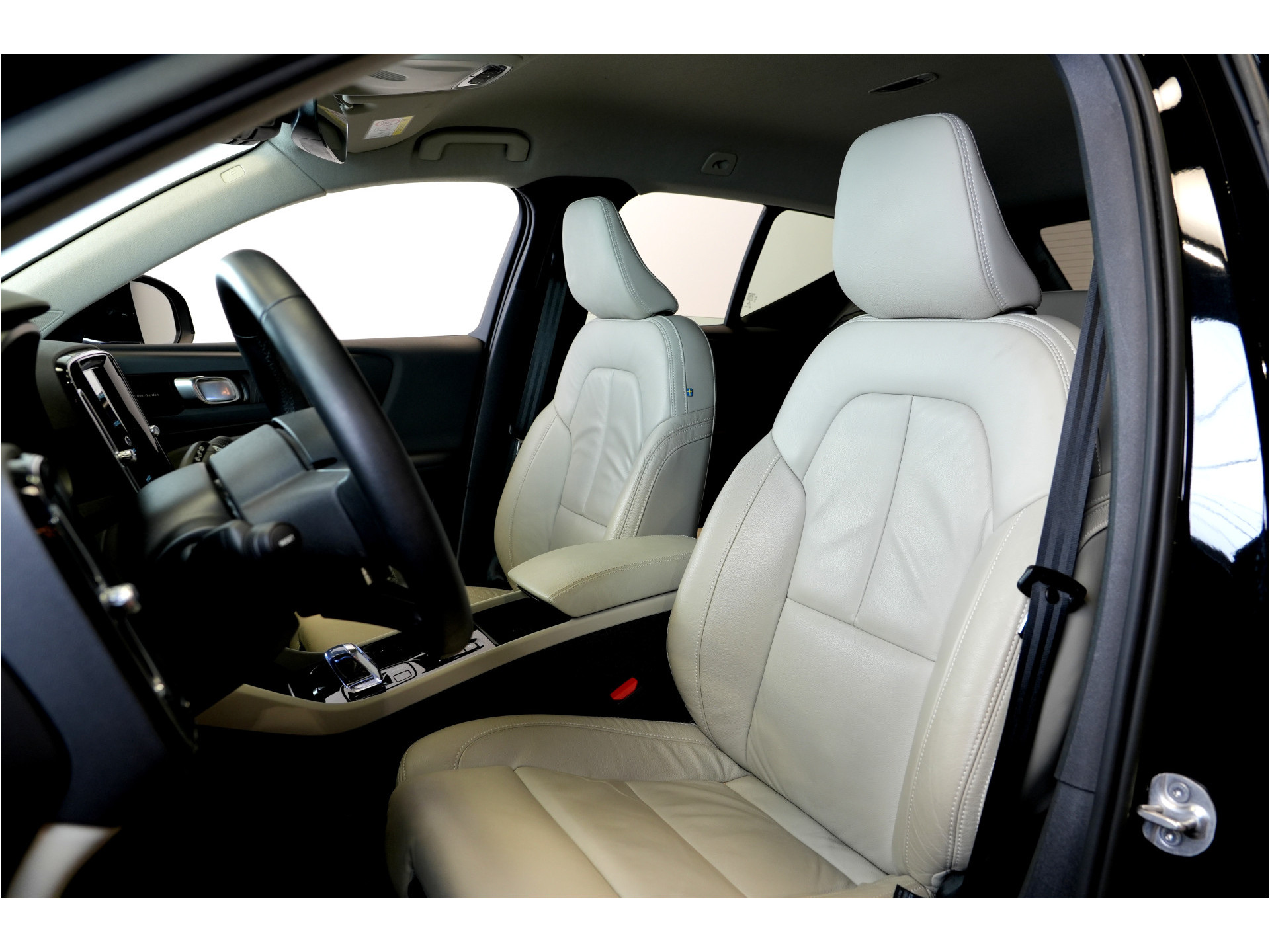 Deze Volvo XC40 staat voor u klaar. Een geweldige, nog jonge occasion die goed is voor gemakkelijk nog een tonnetje of twee op de teller. Deze Volvo XC40 is vanwege de hybride motor een echte slimmerd. Want u rijdt zowel op brandstof als elektrisch. En dat scheelt in de kosten! Een blik van dichtbij onthult meteen twee mooie pluspunten: het lederen interieur en de elektrisch bedienbare achterklep. 's Winters op pad gaan kan een behoorlijke uitdaging zijn. Daarom is deze Volvo XC40 voorzien van weldadige verwarmbare voorstoelen. Ziet er goed uit, die sportstoelen. Maar waar het om gaat, is de solide zit onder alle omstandigheden. Pak aan, 't is winter! Zo'n verwarmd stuurwiel is dan bijzonder prettig! In deze auto profiteert u onder andere ook van: 18 inch lichtmetalen velgen, LED koplampen, warmtewerend glas, drive mode control, dakspoiler en in delen neerklapbare achterbank.