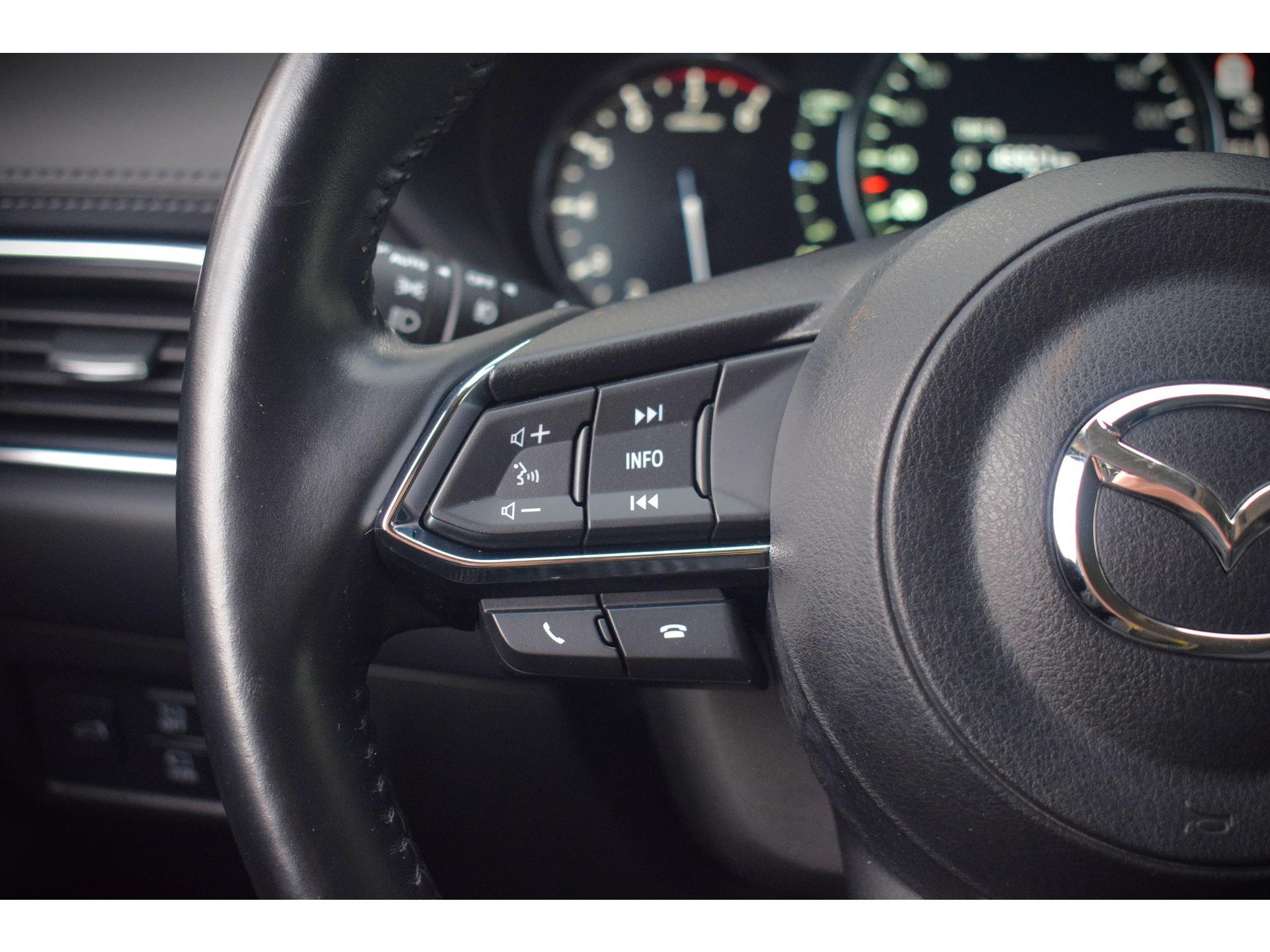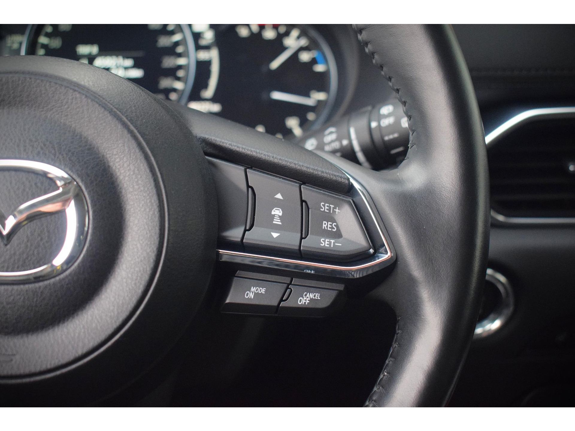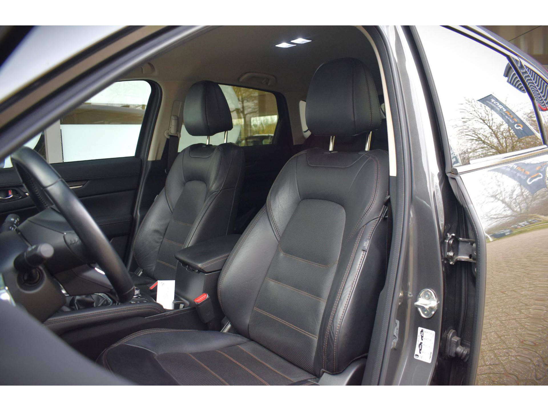 De nieuwste veiligheidssystemen komen in deze Mazda CX-5 samen. Belangrijk voor uw veiligheid en die van uw passagiers is de verkeersbord-detectie in deze auto. Deze Mazda CX-5 is ook behulpzaam als het gaat om een rechte koers. Het Lane-keeping systeem signaleert en corrigeert als u onbedoeld de rijstrooklijnen dreigt te overschrijden. Het forward collision warning-systeem is constant alert en detecteert via sensor de afstand tot voorliggers. Wordt die te klein, dan volgt een automatische waarschuwing. Met voorzieningen als head-up display, dodehoekdetectie, hill hold functie, brake assist, vermoeidheidsherkenning en bandenspanningcontrolesysteem, bent u altijd veilig onderweg.