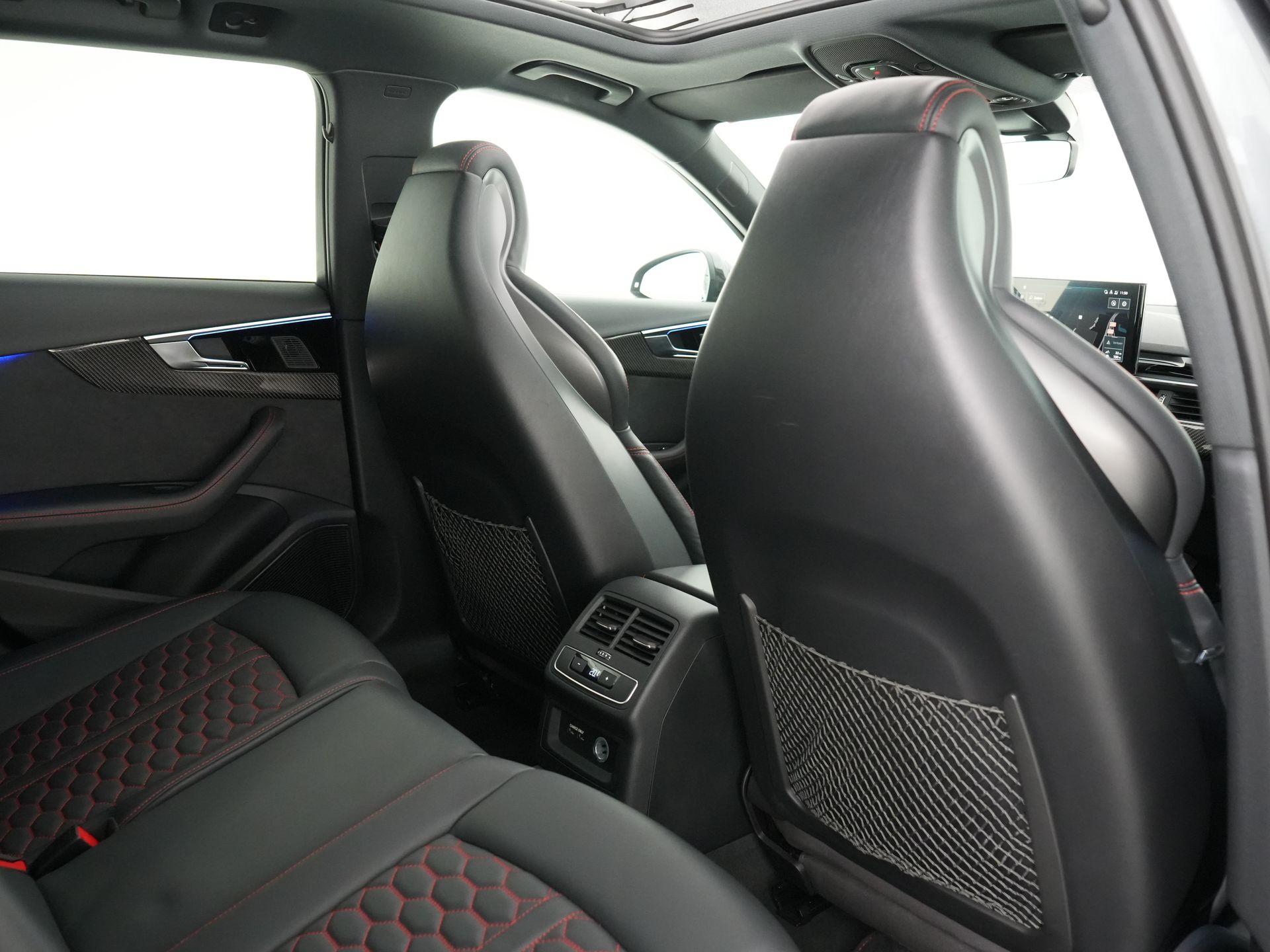 Binnenin vind je sportstoelen Plus met fijnnappa lederen bekleding, RS Design pakket Rood, Audi virtual cockpit Plus, head-up display en het Bang & Olufsen 3D soundsysteem. Comfort is aanwezig dankzij onder meer het panoramadak, 3-zone climate control, elektrisch verstelbare stoelen met geheugen en stoelverwarming.