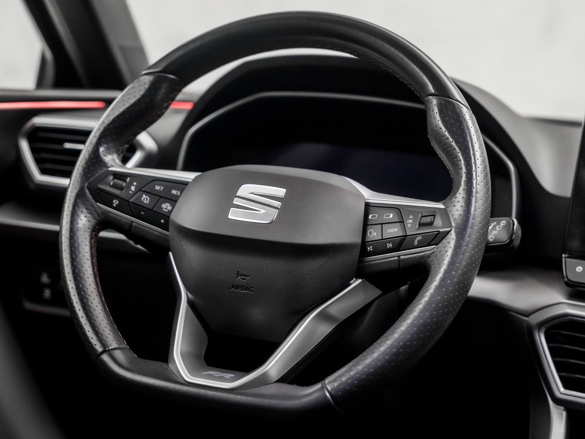 Wat ook opvalt, is de strakke en overzichtelijke informatie die het digitale dashboard levert. Wat een gemak, die achteruitrijcamera. Alles in beeld zonder capriolen. Als u de adaptive cruise control inschakelt, regelt de auto zelf de snelheid en de afstand tot de auto voor u. Connected Services zorgen ervoor dat de belangrijkste functies en data van de auto altijd en overal te checken zijn. Gewoon via de app op de smartphone. Onderweg kunt u veilig genieten van het audio-installatiesysteem met DAB-radio en het navigatiesysteem. Want in deze SEAT bedient u ze vanaf het stuurwiel of met uw stem. Ook automatische airconditioning, sportstuur met schakelpaddels, regensensor, keyless entry, automatisch dimmende binnenspiegel en isofix-aansluiting zijn aan boord.