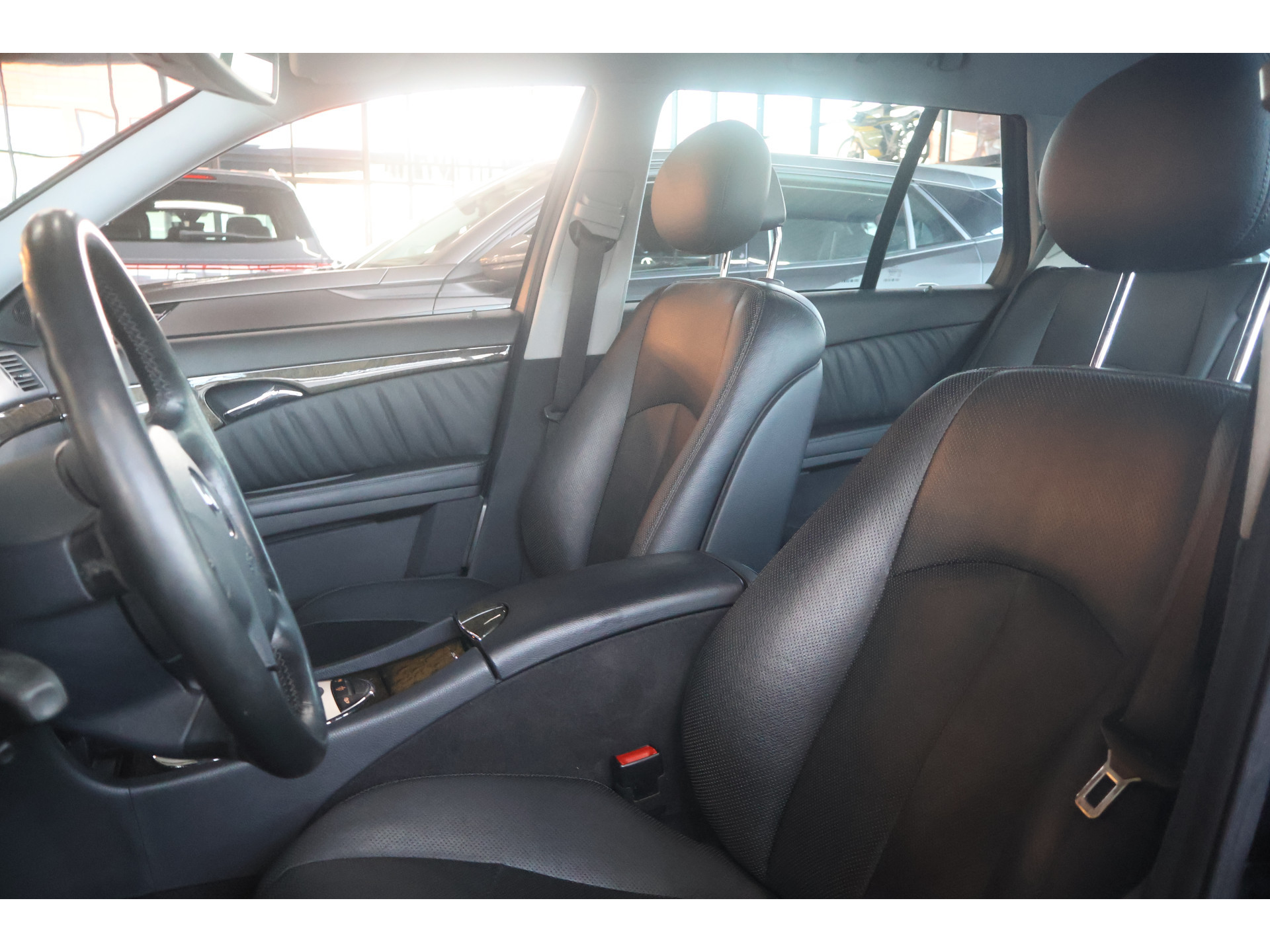 Een auto als de Mercedes-Benz E-klasse Combi biedt een dynamiek en comfort die typerend zijn voor de producten van de Duitse autofabrikanten. Een zescilinder benzinemotor en een automatische transmissie zorgen voor de uitstekende prestaties van deze auto. Lekker hoor, die verwarmbare voorstoelen. Helemaal op koude dagen. Elke wegdek voelt aan als een biljartlaken dankzij de luchtvering. De elektrisch bedienbare achterklep opent met een druk op de knop. In het donker zorgt de xenonverlichting voor een goed zicht op de weg. Stilstaan is besparen. Dankzij het start-stopsysteem. Want als u niet vooruit hoeft, gaat de motor uit. En aan, als u weer optrekt. Verder is de Mercedes-Benz uitgerust met: 16 inch lichtmetalen velgen, halflederen bekleding, warmtewerend glas, in delen neerklapbare achterbank en verstelbare lendensteunen.