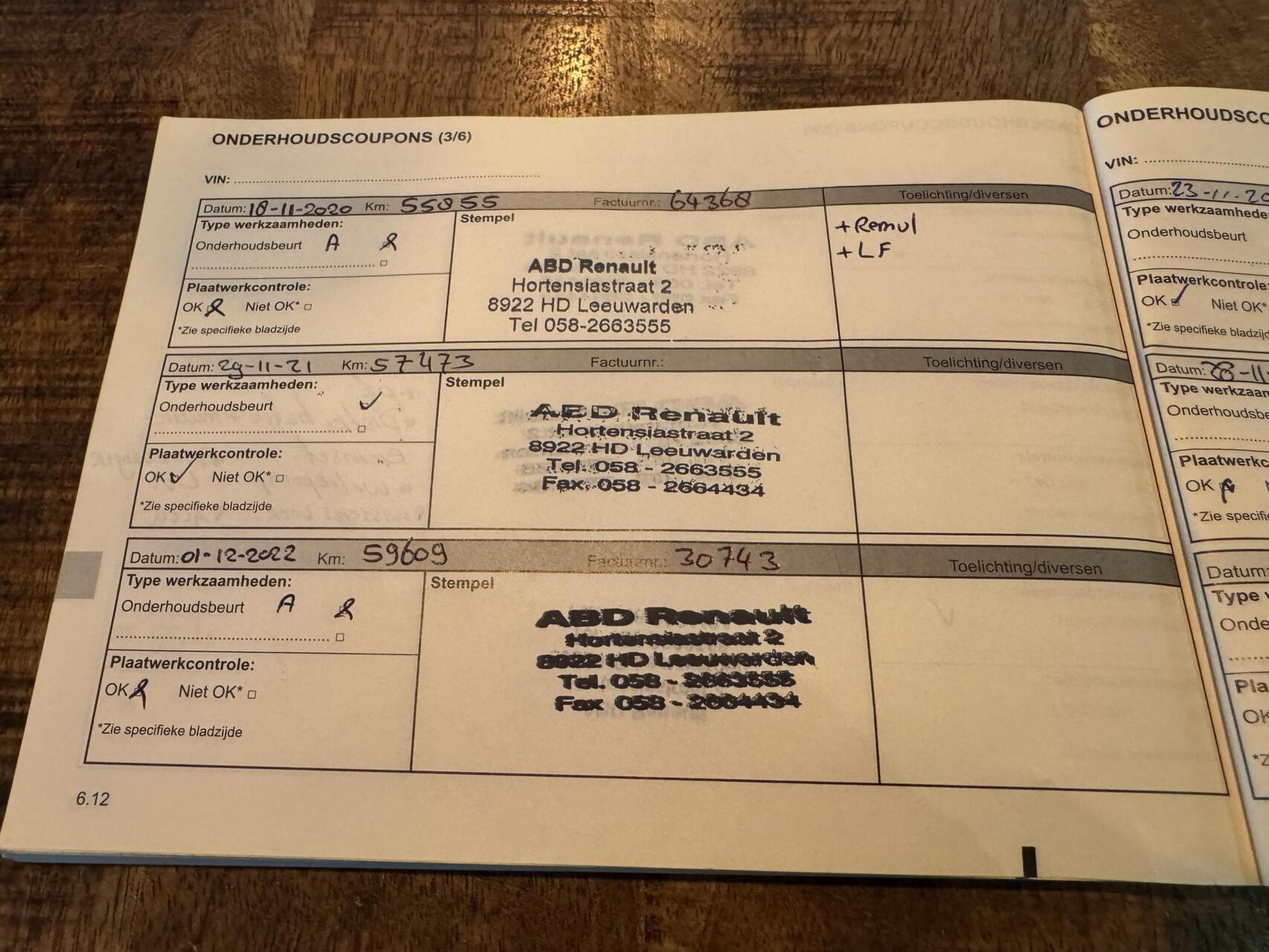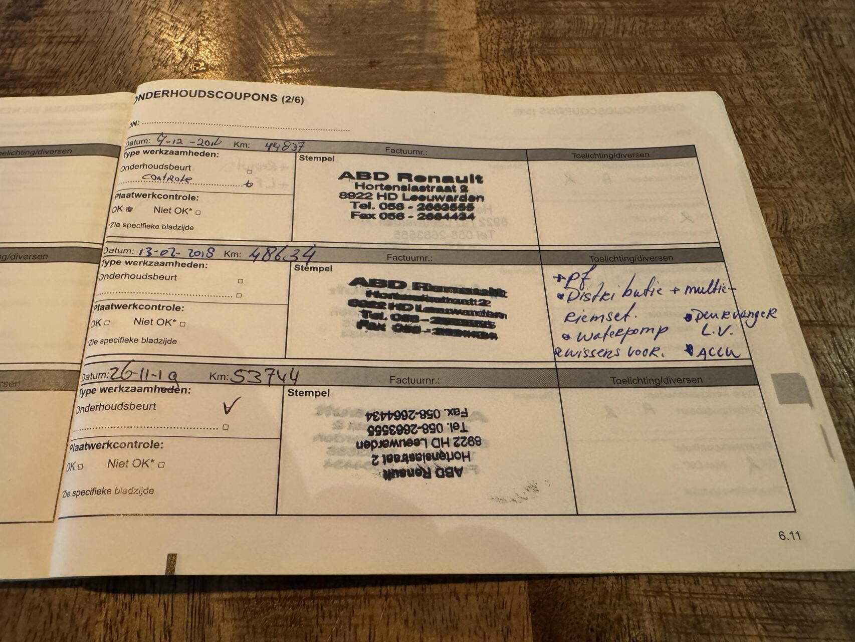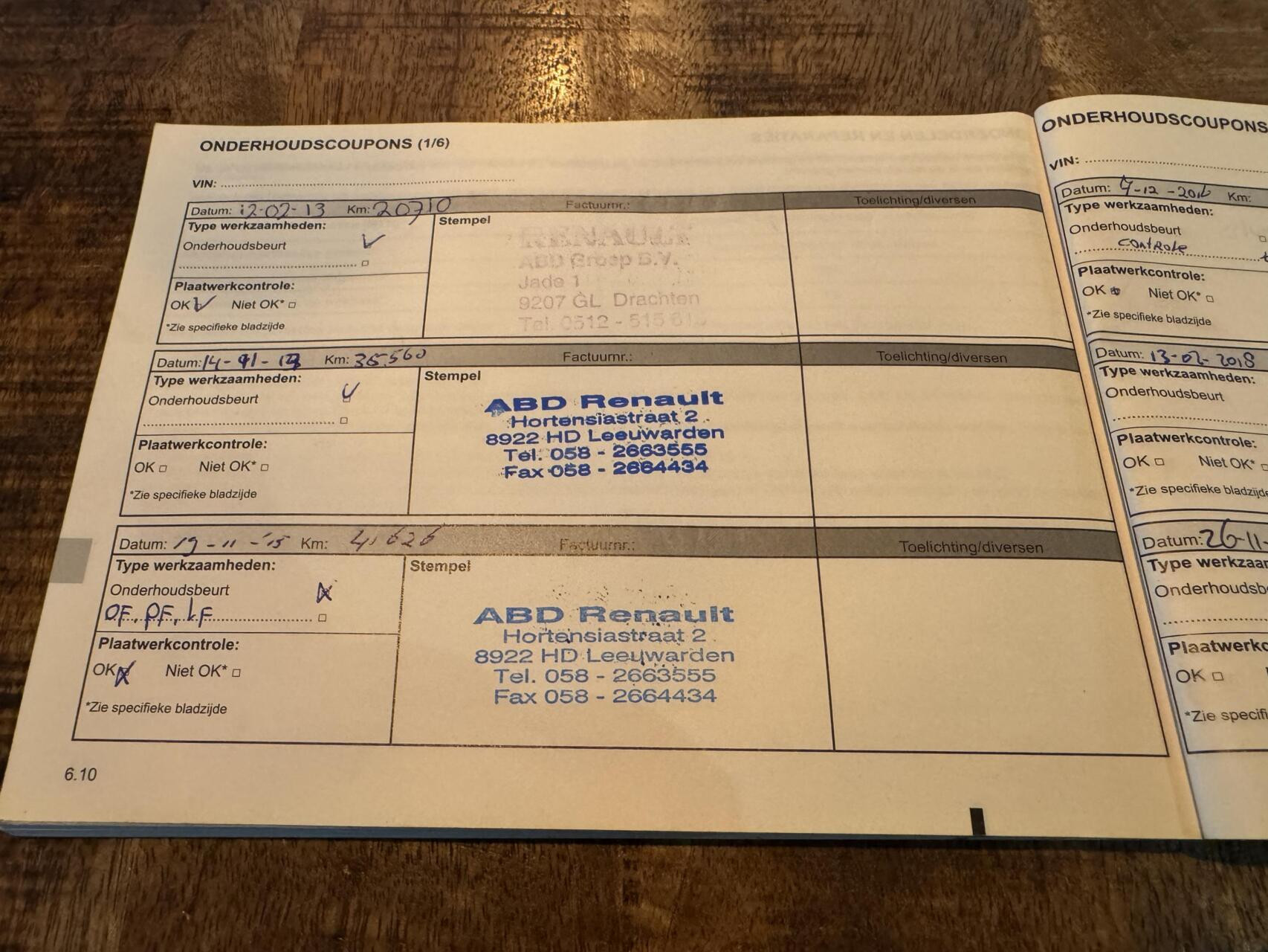 Onderhoudsboekjes: Aanwezig