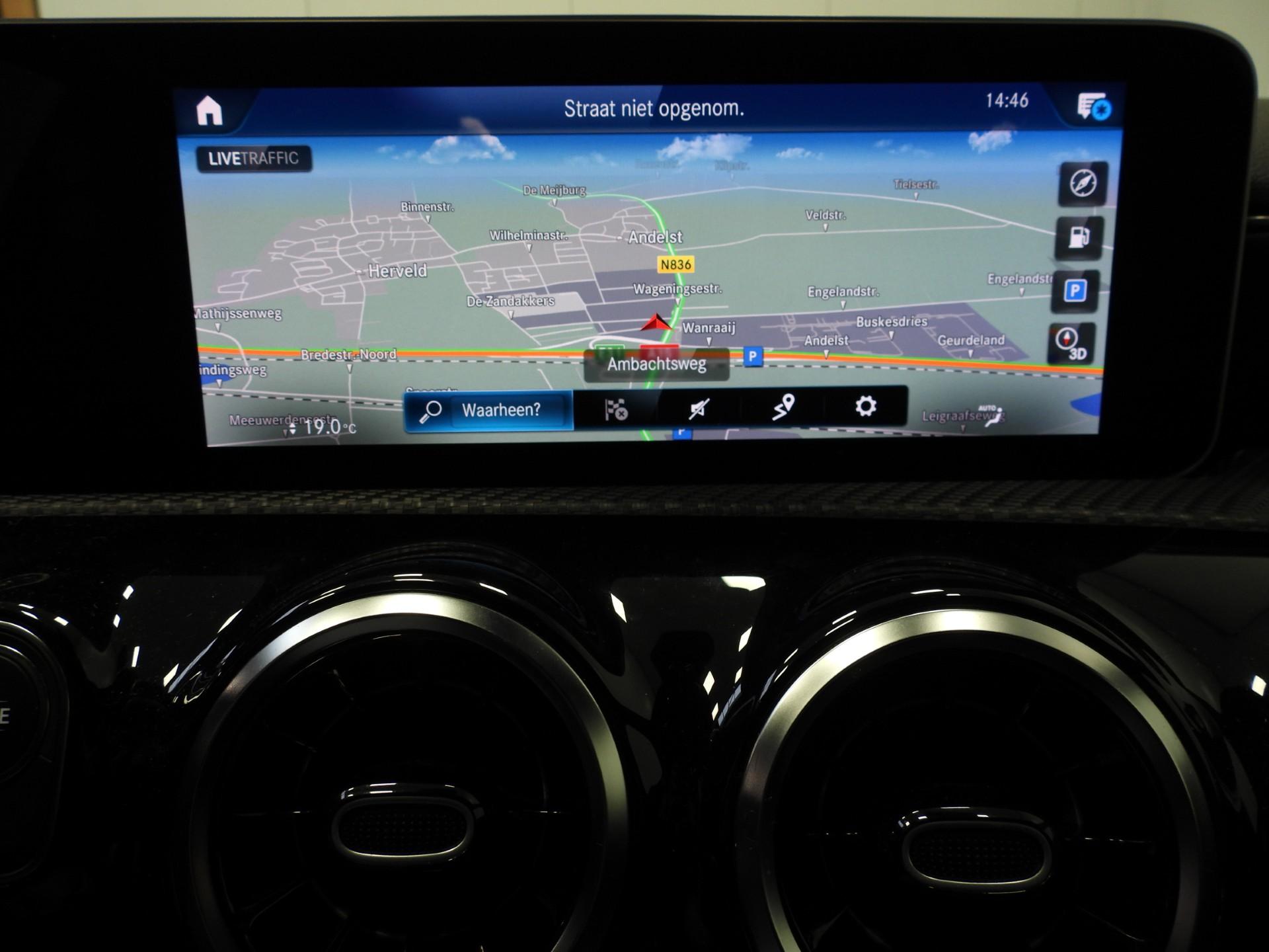 Zoals u mag verwachten van deze Mercedes-Benz A-klasse is hij uitgerust met een reeks aan actieve veiligheidssystemen. Verkeersbord-detectie herkent verkeersborden en toont deze op het instrumentarium van de auto. Het Lane-keeping systeem let constant op en waarschuwt of corrigeert als u onoplettend over de lijnen van de rijstrook gaat. Wanneer u hard moet remmen, is elke decimeter verkorting van de remweg essentieel. Voor extra remkracht zorgt dan de Brake Assist.