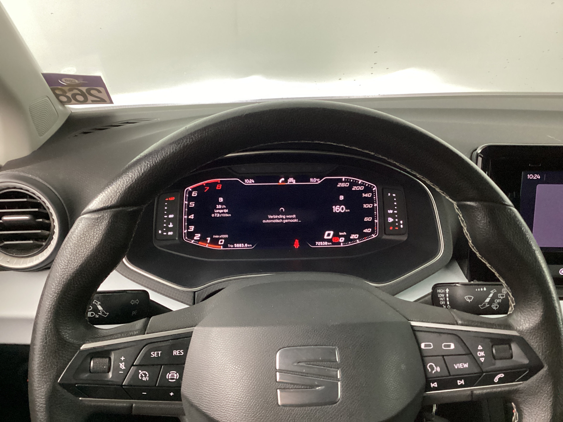 Wat ook opvalt, is de strakke en overzichtelijke informatie die het digitale dashboard levert. In één oogopslag weet u de complete systeemstatus van deze auto. Dankzij Connected Services. Laat u onderweg niet afleiden, de bediening van het audiosysteem gaat met knoppen op het stuur. Natuurlijk is de audio-installatie voorzien van dab-ontvangst. Met automatische airconditioning hoeft u alleen de gewenste temperatuur in te stellen. Het systeem doet de rest. Parkeersensoren zijn een handig hulpmiddel om parkeerschades te voorkomen. En deze auto heeft ook regensensor, cruise control, automatisch dimmende binnenspiegel, lederen stuur, centrale deurvergrendeling met afstandsbediening en boordcomputer als standaard uitrusting.