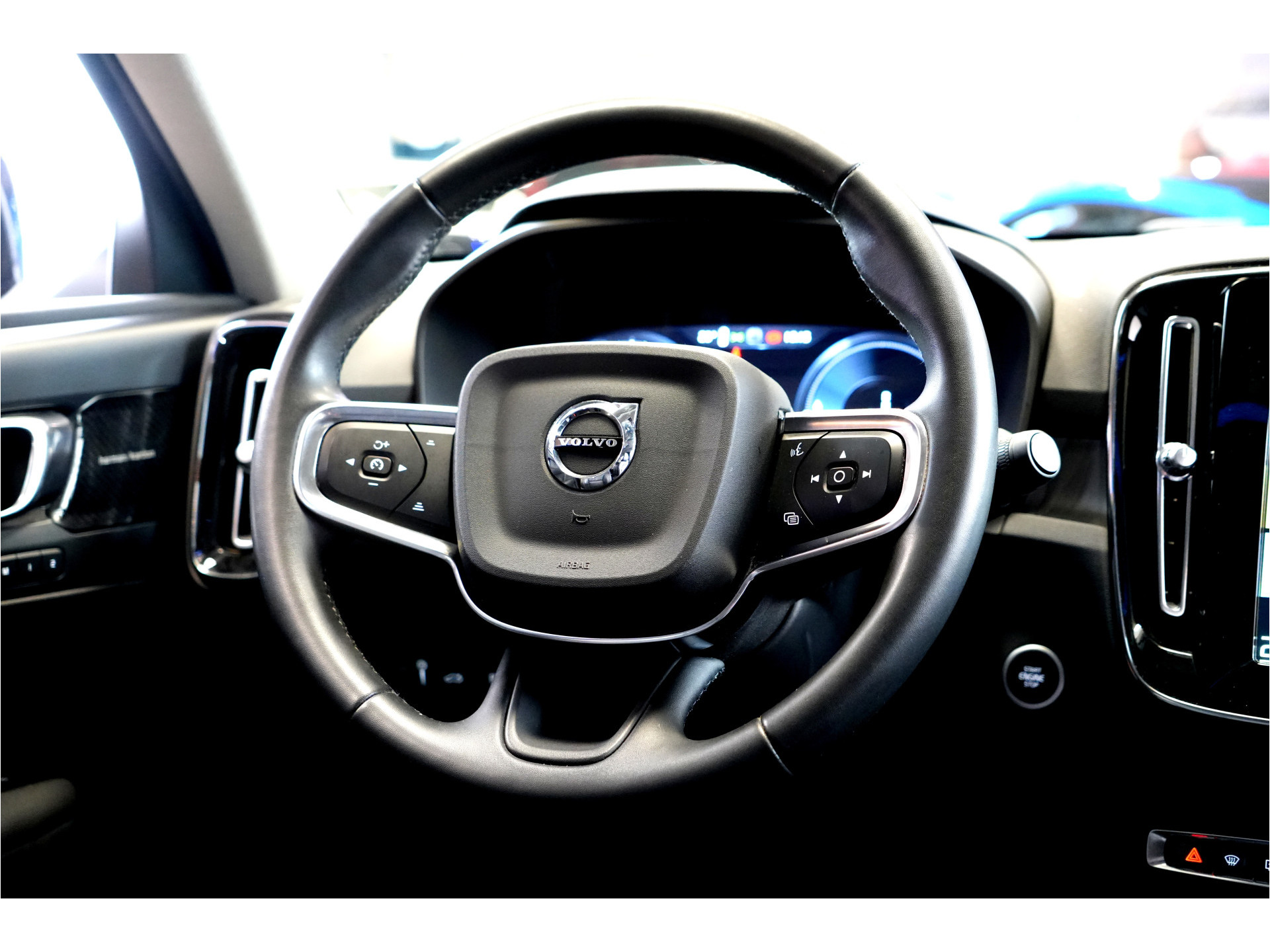 Met zijn inventieve techniek is de hybride Volvo XC40 tegelijk comfortabel en zuinig met brandstof. Een fraai voorbeeld van een hybride auto. Zuinig in brandstof door de pittige elektromotor en maximale actieradius dankzij de verbrandingsmotor. Binnenin zien we een fraai afgewerkt lederen interieur. Een weldaad voor u en uw bijrijder: deze Volvo XC40 heeft verwarmbare voorstoelen. Scherpe bochten, pittige acceleraties? In de sportstoelen blijft u altijd in positie. Volop licht en ruimtelijk gevoel geeft het elektrische bediende glazen panoramadak. Een praktische extra is de elektrisch bedienbare achterklep die opent en sluit met een druk op de knop. Natuurlijk kunt u zonder. Maar waarom? Lekker toch, zo'n verwarmd stuurwiel? Bij de uitrusting van deze auto horen onder meer 19 inch lichtmetalen velgen, LED koplampen, warmtewerend glas, drive mode control, zwarte hemelbekleding en dakspoiler.