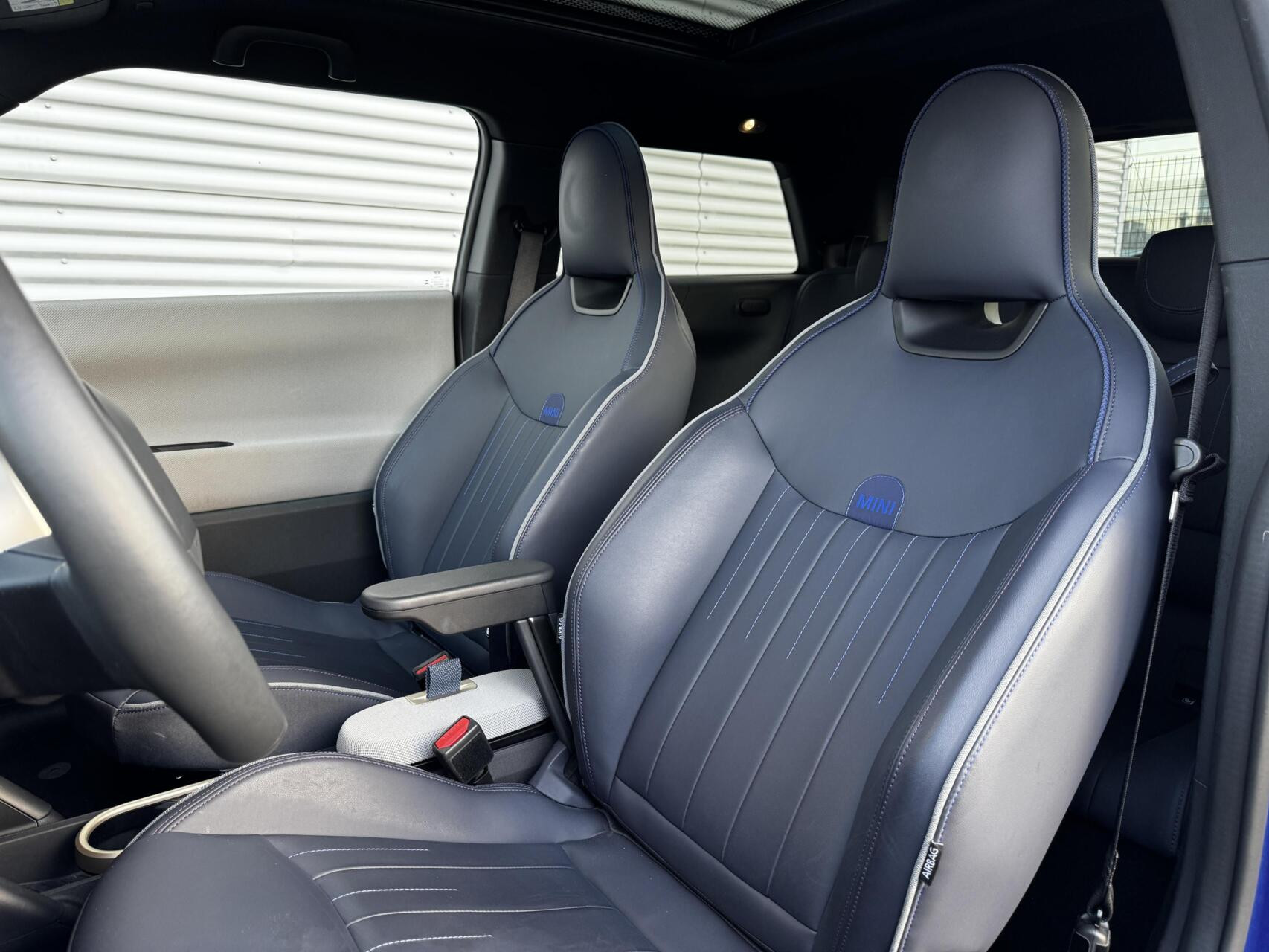 Bijzonder fraaie MINI Cooper SE gehuld in ‘Blazing Blue’ met een ‘Nightshade Blue’ lederen interieur. Een zeer bijzondere configuratie en precies zoals wij hem nieuw zouden bestellen. Aan fijne opties natuurlijk geen gebrek: 18 inch MINI Night Flash wielen, Panoramadak, John Cooper Works actieve stoelen, Stoelverstelling elektrisch met memory, Alarmsysteem, 360 graden camera, Harman Kardon audio, Driving Assistant Plus, Head Up display en ga zo maar door. Niet vreemd dat de nieuwprijs door de €50.000,- heen schoot. Afkomstig van de eerste eigenaar, origineel Nederlands geleverd, nog lopend in de MINI fabrieksgarantie en helemaal klaar voor de volgende liefhebber dan wel liefhebster. Hopelijk tot snel in Harderwijk! Net binnen, de uitgebreide fotoreportage volgt.