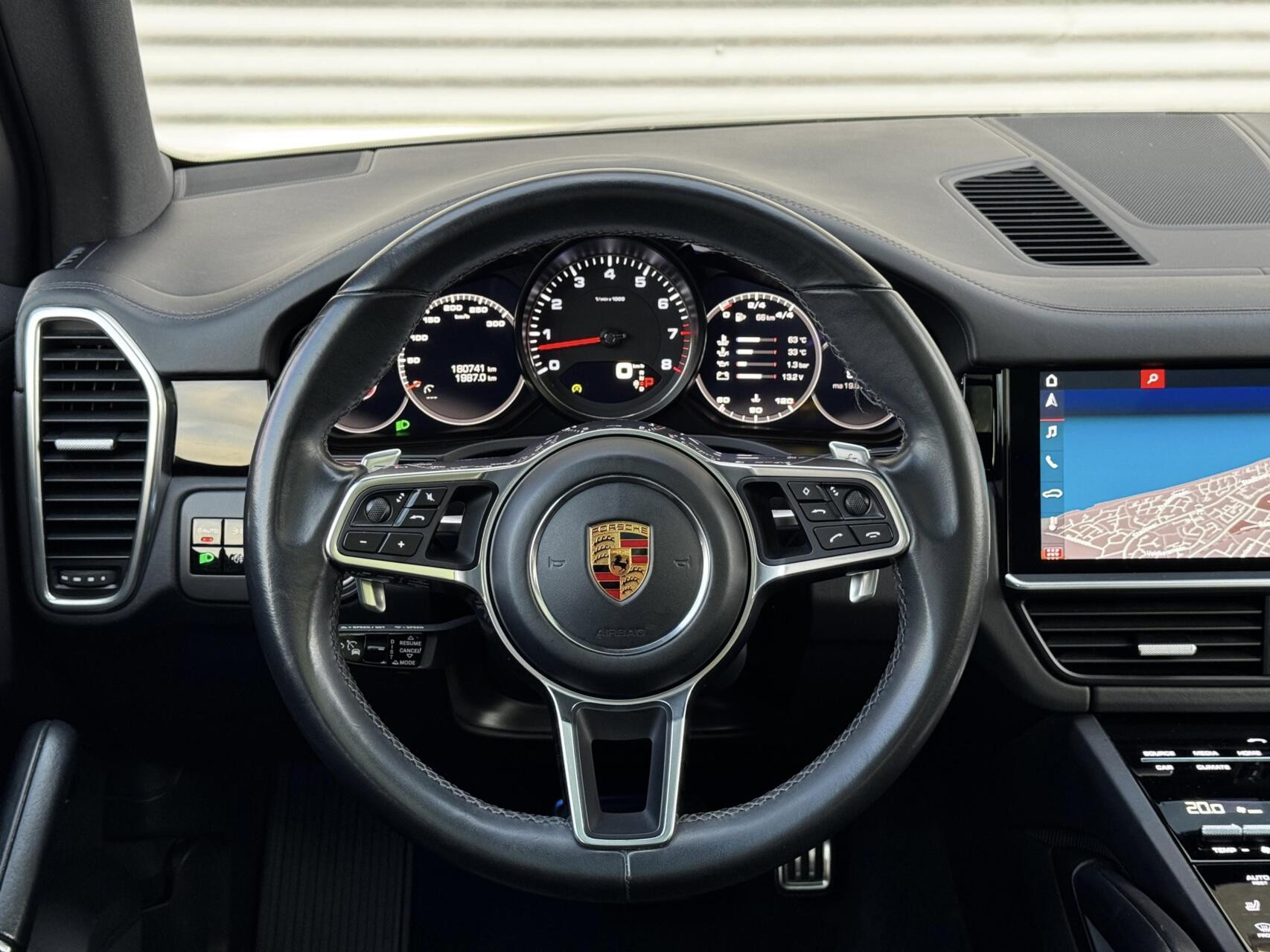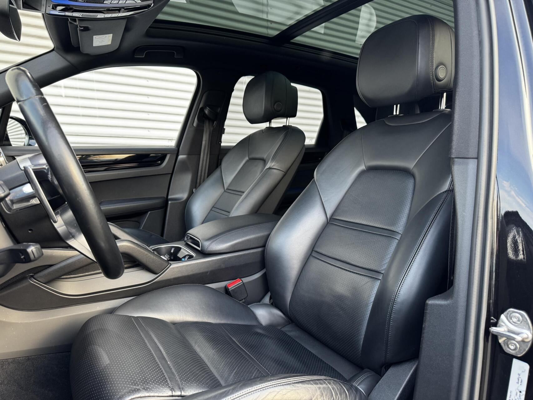 Stijlvolle Porsche Cayenne S gehuld in ‘Jet Black’ metallic met een ‘Schwarz’ lederen interieur. Een zeer bijzondere configuratie en precies zoals wij hem nieuw zouden bestellen. Aan fijne opties natuurlijk geen gebrek: 21 inch Cayenne Turbo wielen, Panoramadak, 14-weg stoelen, Bose audio, Trekhaak, Luchtvering, 360 graden camera, Soft Close, Verwarmd stuurwiel, Stoelverwarming voor & achter, Cruise Control adaptief en ga zo maar door. In keurige staat, net voorzien van groot onderhoud en helemaal klaar voor de volgende liefhebber dan wel liefhebster. Hopelijk tot snel in Harderwijk! Net binnen, de uitgebreide fotoreportage volgt.