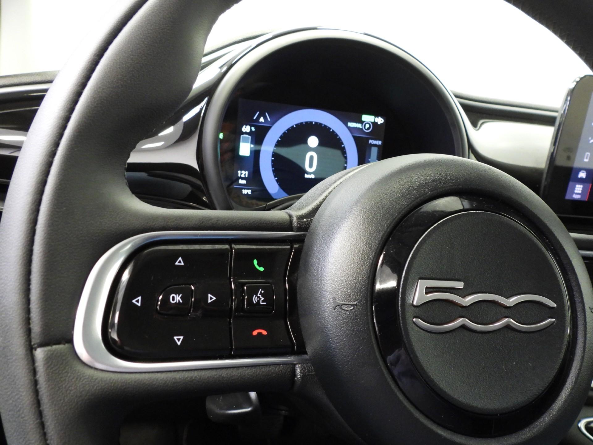 Snelheid en souplesse in stilte. Met deze Fiat 500 ervaart u alles wat elektrisch rijden plezierig maakt. Het rijden met deze auto is werkelijk grenzeloos, want de actieradius is groot genoeg voor allerlei veelvoorkomende ritten en de tijd om de accu's op te laden is prima in te passen in uw dagelijkse bezigheden. De sportstoelen houden u en uw bijrijder goed op z'n plek tijdens het accelereren en bij het nemen van scherpe bochten. Tot de uitrusting behoren ook sportonderstel, LED-dagrijverlichting, sportinterieur, getint glas, LED-achterlichten en snelheidsafhankelijke stuurbekrachtiging.