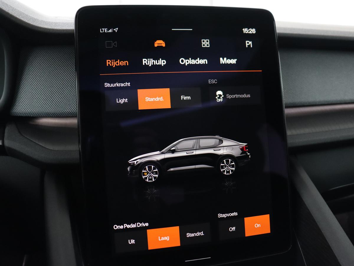 Alle ritinformatie en communicatie is gebundeld in één overzichtelijk digitale dashboard. De 360 graden camera wordt mogelijk gemaakt door vier camera's die tezamen werken om zo een uitgebreid zicht te bieden, wat van grote waarde is bij het navigeren door smalle straatjes en parkeerplekken. Met adaptive cruise control houdt deze auto automatisch afstand tot uw voorligger. Met uw smartphone maakt u overal contact met de auto. Remote services geven direct inzicht in uiteenlopende functies en zijn op afstand te activeren. Zo kan muziek in de auto klinken: het high performance audiosysteem levert topklasse geluid! Deze Polestar is voorzien van full map navigatiesysteem, automatische airconditioning, draadloos opladen, DAB ontvangst, regensensor en keyless entry.