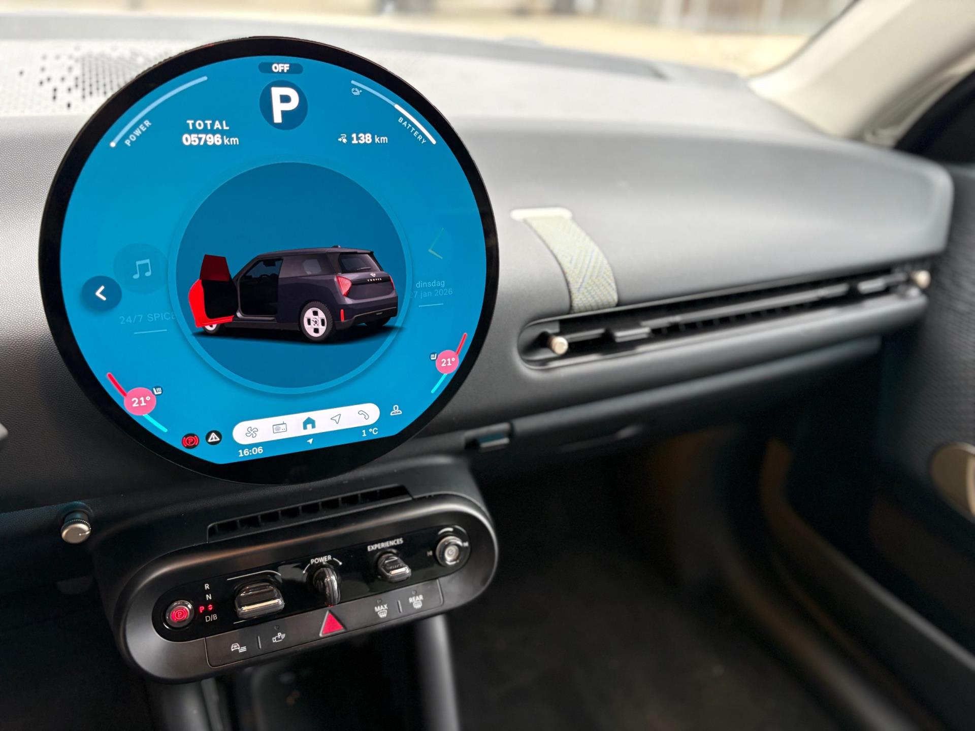 Aan boord van deze Mini houden verschillende geavanceerde systemen voor u de weg in de gaten. Ze waarschuwen u voor noodsituaties en kunnen in een aantal gevallen ook zelf ingrijpen. Met het Lane-keeping systeem gaat u nooit onbedoeld over de streep. Forward collision warning waarschuwt voor een kop-staart botsing. Een belangrijke bijdrage aan de veiligheid in deze auto is de vermoeidheidsherkenning, die waarneemt wanneer de bestuurder tekenen van vermoeidheid vertoont. In deze Mini vinden we verder een dodehoekdetectie, accident avoidance system, hill hold functie en bandenspanningcontrolesysteem.