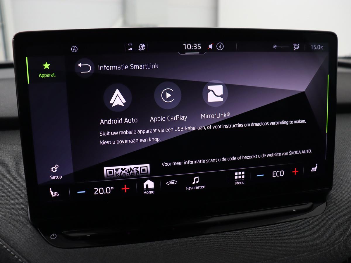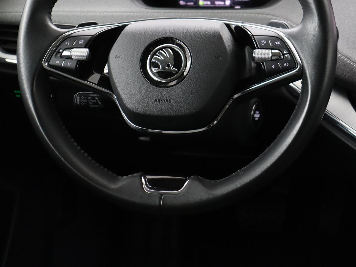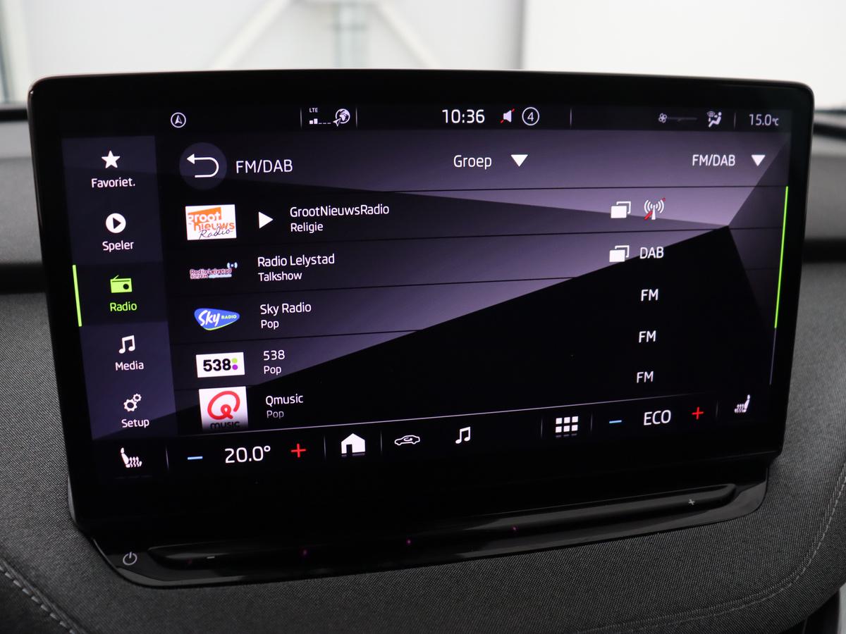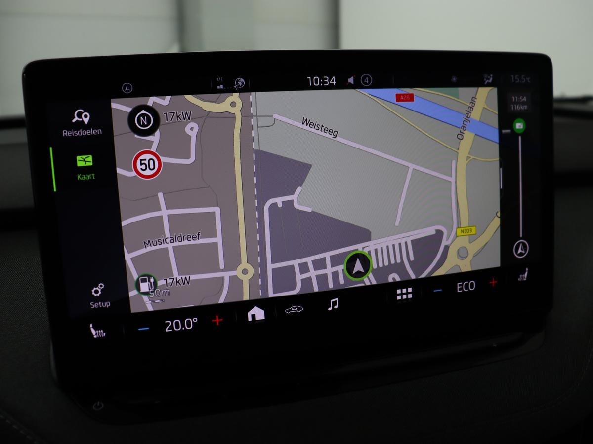 Het personaliseren van uw cockpitinterface is mogelijk met het digitale dashboard in deze auto. Adaptive cruise control houdt de ingestelde snelheid vast en houdt automatisch afstand tot uw voorligger. Gemak dient de mens. Dankzij de spraaksturing bedient u de belangrijkste functie met uw stem. Vergeten af te sluiten? Bandenspanning onvoldoende? De speciale app geeft u direct een seintje met behulp van Connected Services. Het full map navigatiesysteem brengt u soepel en vlot naar uw bestemming. De uitrusting van deze Skoda is met electronic climate control, draadloos opladen, DAB ontvangst, parkeersensoren achter, regensensor en keyless entry behoorlijk compleet.