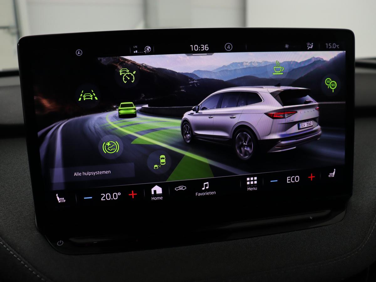 U voelt de onbeperkte kracht van elektrische aandrijving, elke keer als u op weg gaat met deze Skoda Enyaq iV. Geruisloos genieten tegen lage kosten? Dan is deze elektromotor iets voor u! Doe maar luxe! Neem plaats in de verwarmbare voorstoelen en voel de weldaad in koude dagen. Als de 'r' in de maand zit, komt zo'n verwarmd stuurwiel als geroepen! De matrix LED-verlichting is het allernieuwste op het gebied van autoverlichting. Altijd maximaal licht op de weg, zonder tegenliggers te hinderen! Bij de zeer complete uitrusting van deze auto behoren ook 19 inch lichtmetalen velgen, extra getint glas, in delen neerklapbare achterbank, LED-achterlichten, verstelbare lendensteunen en verwarmde ruitensproeiers.