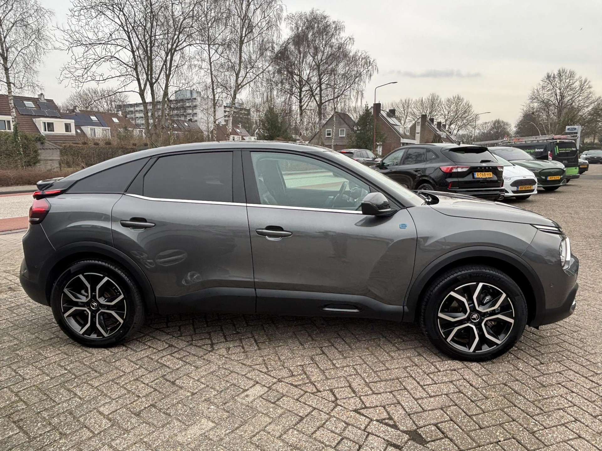 De Citroen Ë-C4 vertegenwoordigt de nieuwe generatie auto's en verenigt elektrische kwaliteit en duurzaamheid met elkaar. De aandrijflijn maakt gebruik van de meest moderne accutechniek, zodat het opladen in zo kort mogelijke tijd gebeurt. Het rijbereik van deze auto is groot genoeg om er de meest voorkomende dagelijkse ritten mee te maken. Op de teller van deze auto staat slechts 22415 kilometer. Topklasse: daar hoort leren bekleding absoluut bij. Zit u goed? Nou, zeker wel, met de comfortstoelen! Qua licht en ruimtelijk gevoel zit het helemaal goed met het elektrisch bediende panoramadak. Hoe koud het buiten ook is, het verwarmbare stuurwiel brengt uw handen en vingers snel weer op temperatuur. Tot de uitrusting van deze Citroen behoren ook 18 inch lichtmetalen velgen, Full LED koplampen, halflederen bekleding, adaptief dempingsysteem, geluidsisolerende ramen en in delen neerklapbare achterbank.