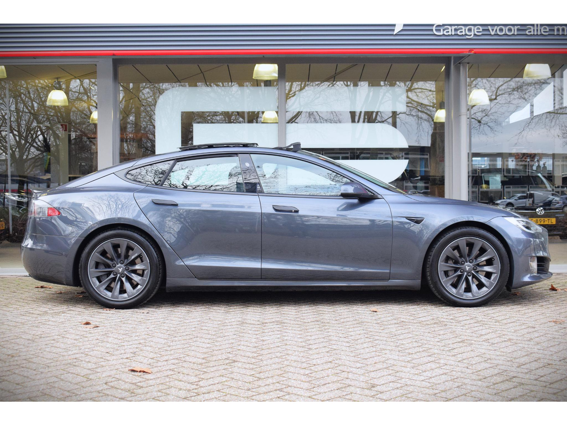 Stijlvol design en topprestaties zonder emissies. Deze Tesla Model S verbindt elegante lijnen met krachtige elektrische aandrijving zonder schadelijke uitstoot. Stil en stevig optrekken zonder extra uitstoot? De elektromotor zorgt ervoor! Neem plaats op de comfortabele stoelen. Dankzij de elektrische bediening en het geheugen is het eenvoudig om hierin de beste zitpositie te vinden. Zelfs als het buiten ijzig koud is, kunnen zowel de bestuurder als de passagiers op de achterbank snel opwarmen, dankzij de verwarmbare stuurwiel en de achterbankverwarming. Voel die ruimte eens! Lekker veel licht door het elektrisch bediende glazen panoramadak. Ook is de auto voorzien van: 19 inch lichtmetalen velgen, LED koplampen, in delen neerklapbare achterbank, LED-achterlichten, verwarmde ruitensproeiers en snelheidsafhankelijke stuurbekrachtiging.