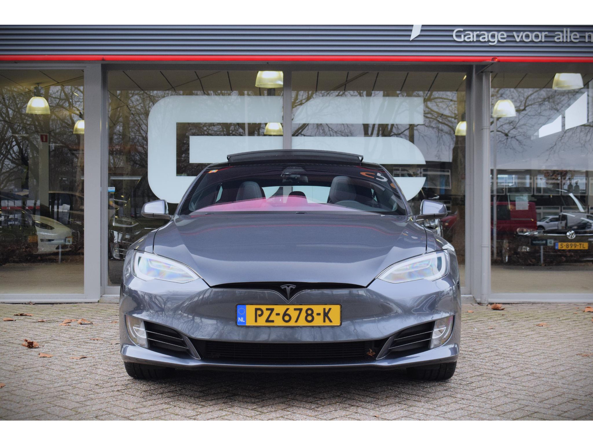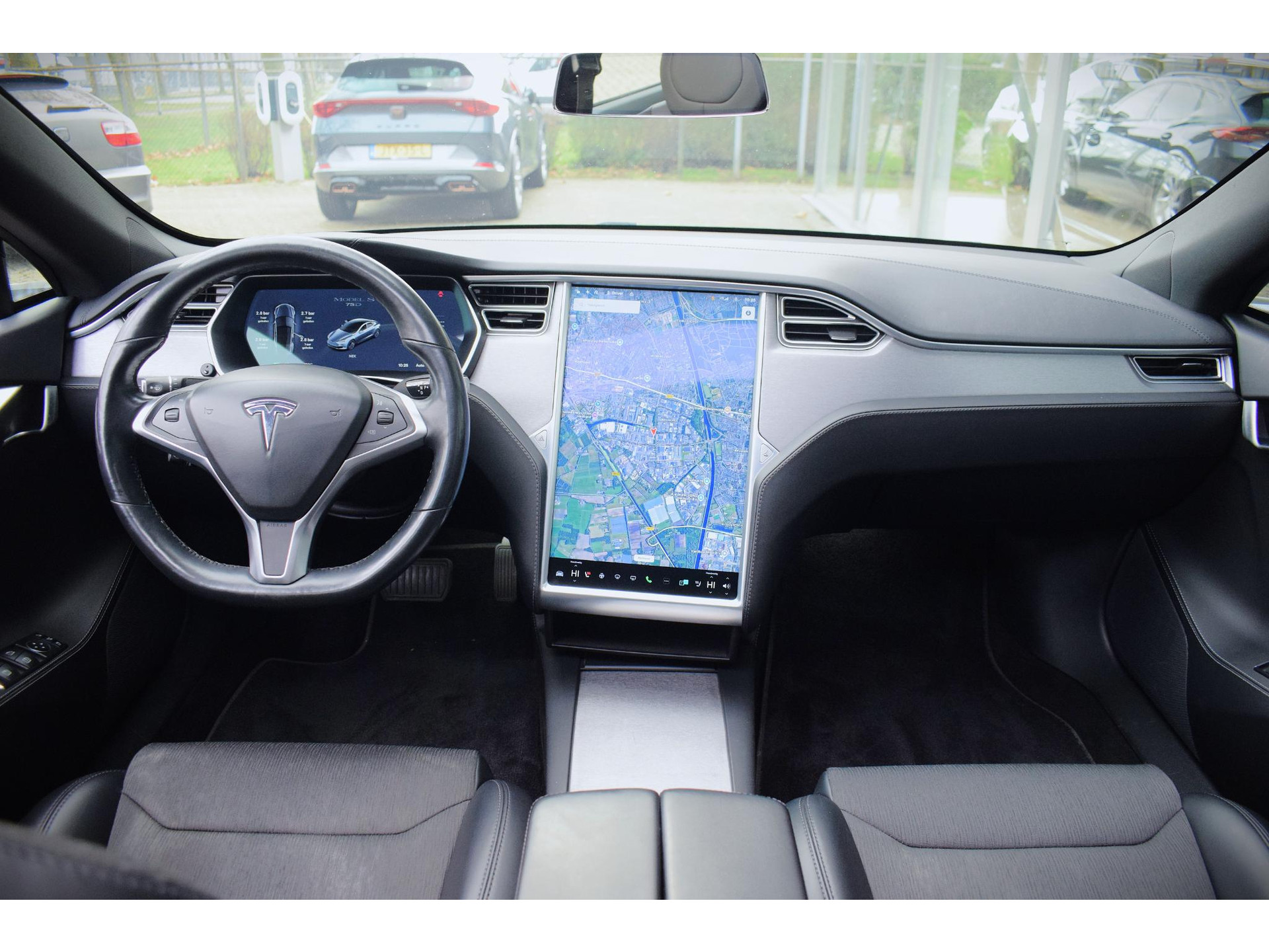 Pragmatisch en veilig als deze auto is, beschikt hij over diverse veiligheidssystemen. Tijdens de rit hebt u altijd een bijrijder, want de verkeersbord-detectie leest de borden langs de weg en projecteert ze voor u op het instrumentarium. Deze Tesla Model S is ook behulpzaam als het gaat om een rechte koers. Het Lane-keeping systeem signaleert en corrigeert als u onbedoeld de rijstrooklijnen dreigt te overschrijden. Verder is deze auto uitgerust met dodehoekdetectie, autonoom remsysteem en bandenspanningcontrolesysteem.