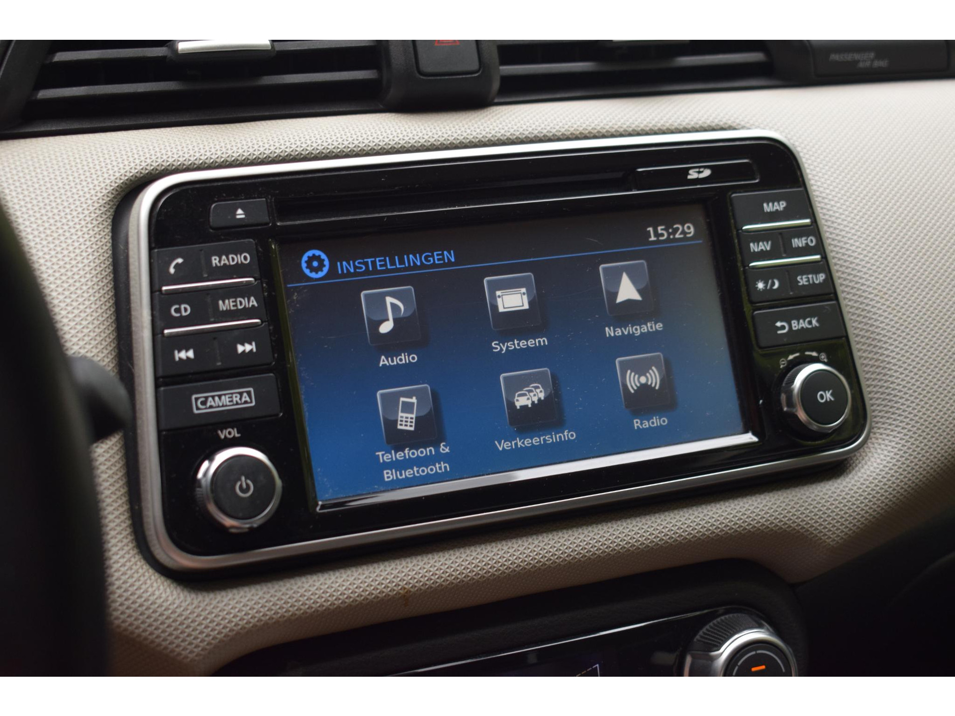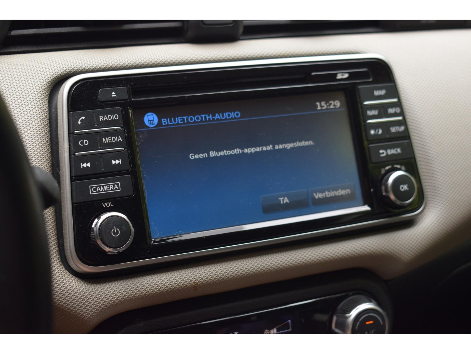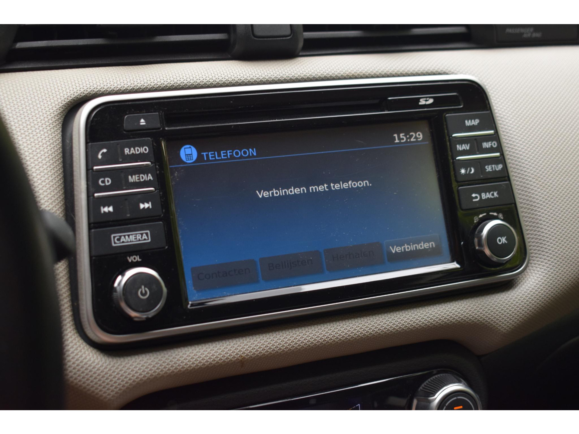 Onder alle omstandigheden perfect zicht op wat zich achter de auto afspeelt: de achteruitrijcamera zorgt ervoor! Met de knoppen op het stuur regelt u het audiosysteem en het full map navigatiesysteem, terwijl u uw blik op de weg gericht houdt. De audio-installatie biedt daarbij glasheldere ontvangst dankzij DAB-ontvangst. Tot de standaard uitrusting van deze auto hoort ook automatische airconditioning. Het hoort bij een intelligente auto als deze dat hij zelf in staat is om zijn omgeving in de gaten te houden. Dat doet deze Nissan met een automatisch inschakelbare verlichting en een regensensor. Kleine ritjes, grote reizen - altijd een relaxte aankomst dankzij de cruise control. Ook is de Nissan uitgerust met: lederen stuur, centrale deurvergrendeling met afstandsbediening en boordcomputer.