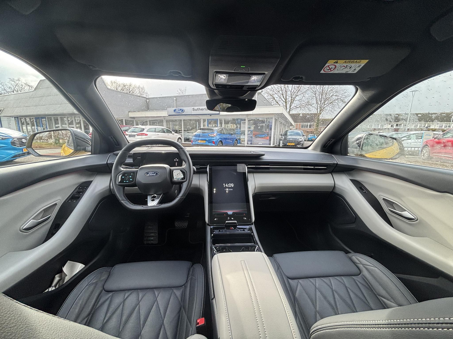 Aan boord van deze Ford houden verschillende geavanceerde systemen voor u de weg in de gaten. Ze waarschuwen u voor noodsituaties en kunnen in een aantal gevallen ook zelf ingrijpen. Een veilige rit voor ogen: daarvoor zorgt de head-up display! U rijdt ook veiliger omdat deze auto voor u de verkeersborden langs de weg kan lezen. De belangrijkste borden worden op uw instrumentarium geprojecteerd, zodat u ze niet kunt missen. Met het Lane-keeping systeem komt u nooit per ongeluk buiten de rijstrook. Verder is deze auto uitgerust met dodehoekdetectie, forward collision warning system, vermoeidheidsherkenning en autonoom remsysteem.