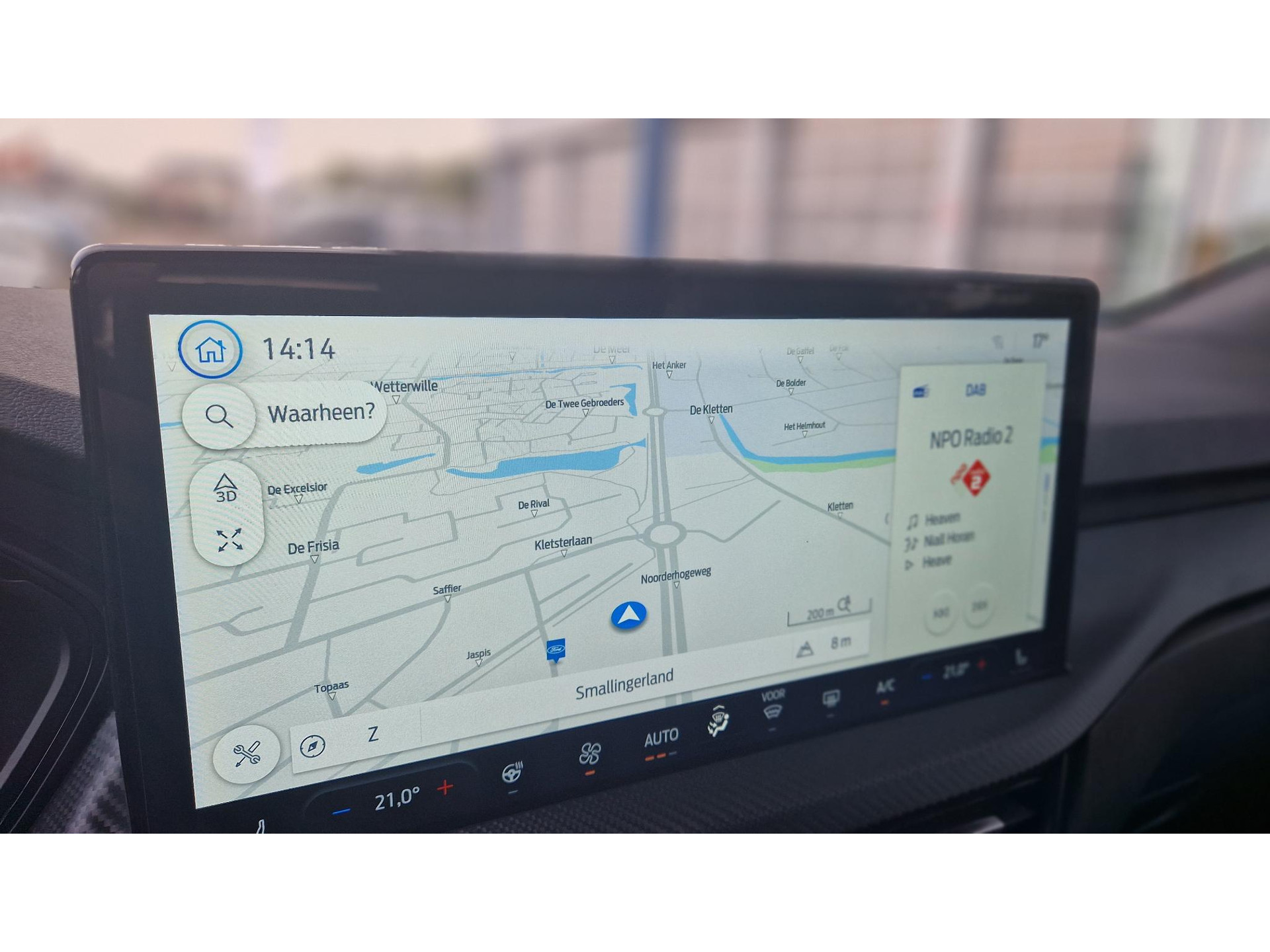 Duik in de digitale wereld van mobiliteit waar alles wat u nodig heeft voor een comfortabele en veilige rit, wordt geprojecteerd op het digitale dashboard. De functie van deze 360 graden camera is vooral nuttig in smalle straatjes waar het zicht beperkt is. Adaptive cruise control is een comfortabele en veilige optie. Het systeem reguleert de snelheid en houdt automatisch afstand tot uw voorligger. Spraaksturing is onderdeel van de uitrusting van deze auto. Met uw stem kunt u de belangrijkste voertuigfuncties bedienen. Een smartphone met internetverbinding legt eenvoudig overal contact met de auto. U kunt functies activeren en de conditie van de auto monitoren. Deze Ford is voorzien van premium audiosysteem, full map navigatiesysteem, kruisend verkeer detectie, automatische airconditioning, draadloos opladen en DAB ontvangst.