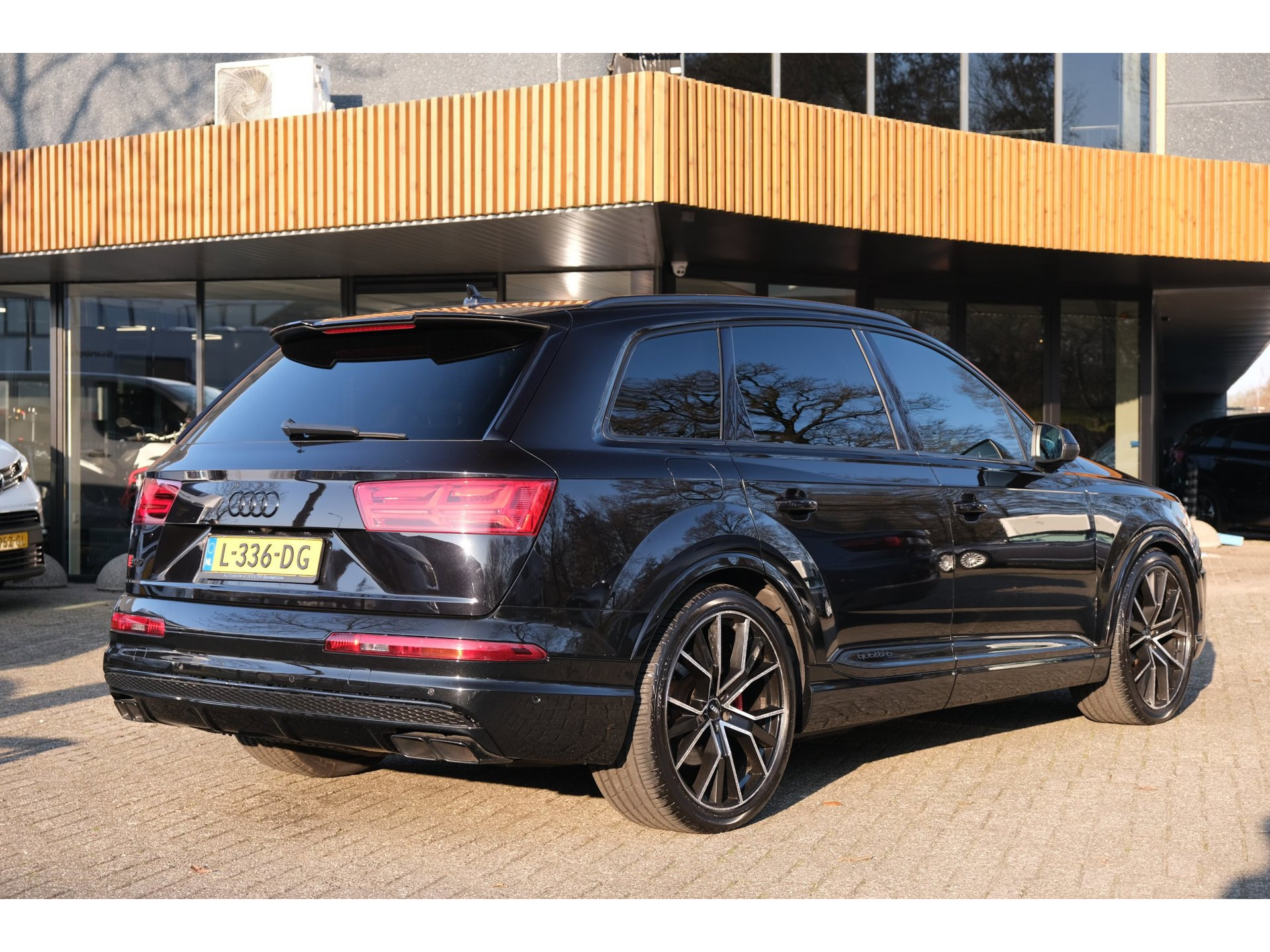 Deze SQ7 onderscheidt zich bovendien door geavanceerde technologieën die zowel het comfort als de rijprestaties naar een hoger niveau tillen. De vierwielbesturing zorgt voor extra wendbaarheid bij lage snelheden en meer stabiliteit bij hogere snelheden. Adaptieve cruise control maakt lange ritten comfortabel en ontspannen, terwijl de head up display belangrijke rijinformatie direct in het zicht van de bestuurder projecteert.