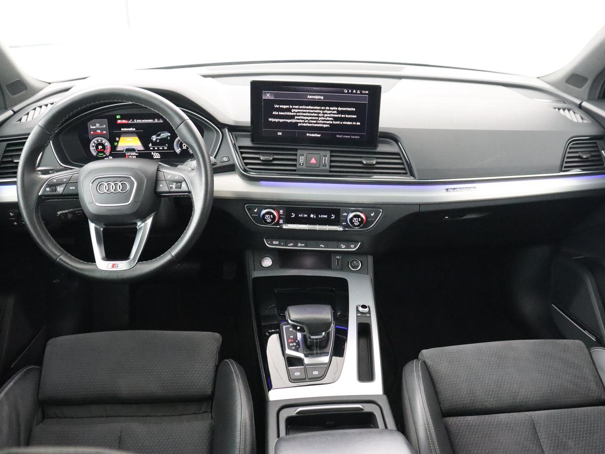 Laat u niets wijsmaken, deze Audi Q5 biedt alles wat u van een auto verlangt. Deze auto komt uit 2021. Voor liefhebbers van rijplezier is de S-Line styling een belangrijke reden om voor deze auto te kiezen. Dit is een van de betere hybride auto's. Ideaal rijden door de combi van elektromotor en verbrandingsmotor! Ruimte? Ja hoor! Open maar eens de elektrisch bedienbare achterklep en check de bagageruimte; stap daarna in om het weidse gevoel te ervaren dat het elektrisch bediende glazen panorama dak u bezorgt. Lekker hoor, die verwarmbare voorstoelen. Helemaal op koude dagen. De sportstoelen geven u veel zitsteun. Ook op de minder vlakke wegen zoeft u lekker door dankzij de luchtvering. De slimme koplampen gebruiken de allernieuwste matrix LED-verlichting. Altijd maximaal zicht, nooit verblinding bij de tegenligger. Ook 21 inch lichtmetalen velgen, warmtewerend glas, in delen neerklapbare achterbank, LED-achterlichten en verwarmde ruitensproeiers horen tot de voorzieningen op deze auto.