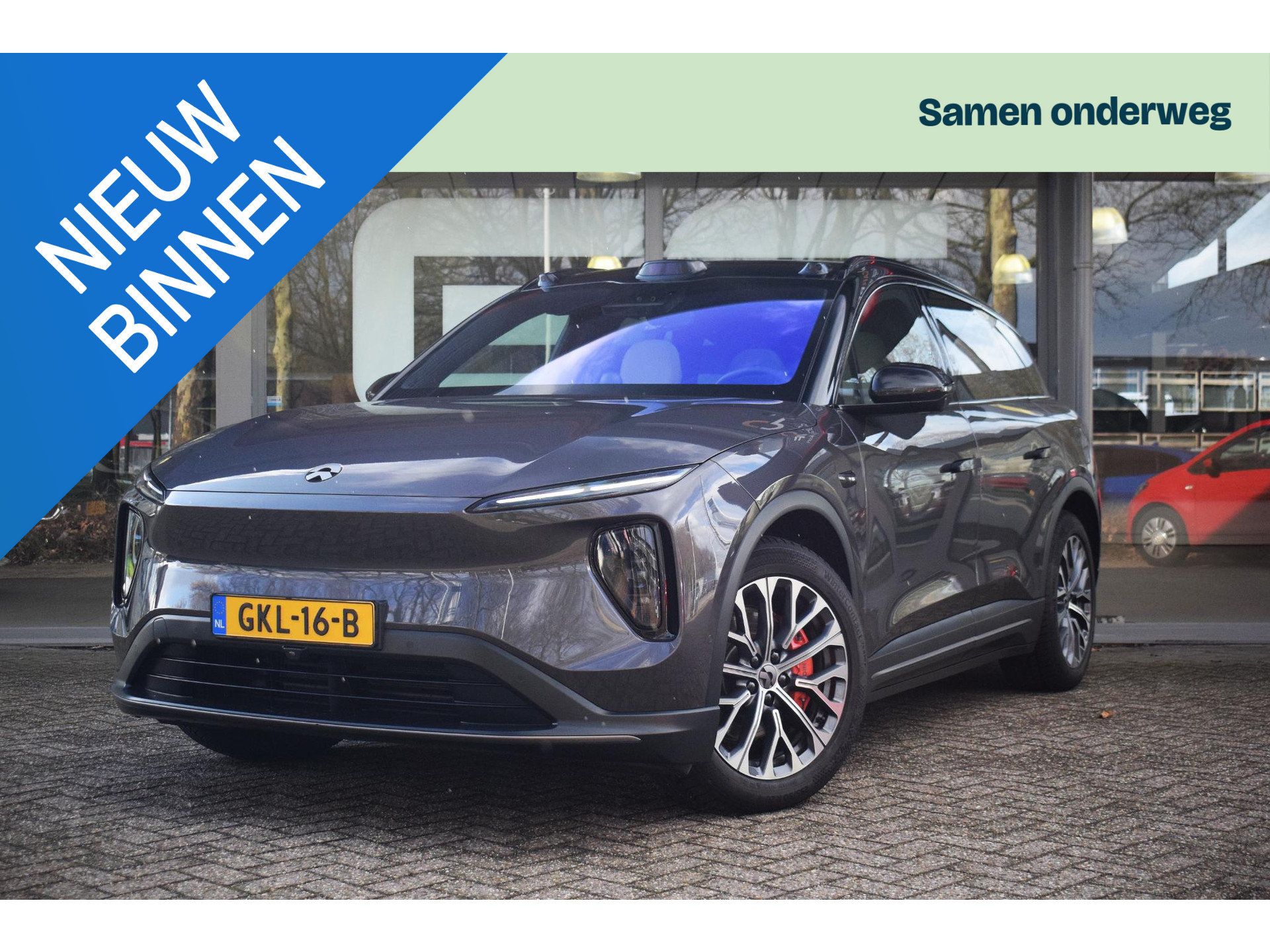 Betreft accu-huur €289 inc btw per maand. Hiervoor kun je 2x per maand de accu wisselen bij een Nio station. Uiteraard kun je hem ook gewoon opladen bij elke laadpaal. Auto staat getoond op zijn winterset, er zit nog een 21inch zomerset bij.