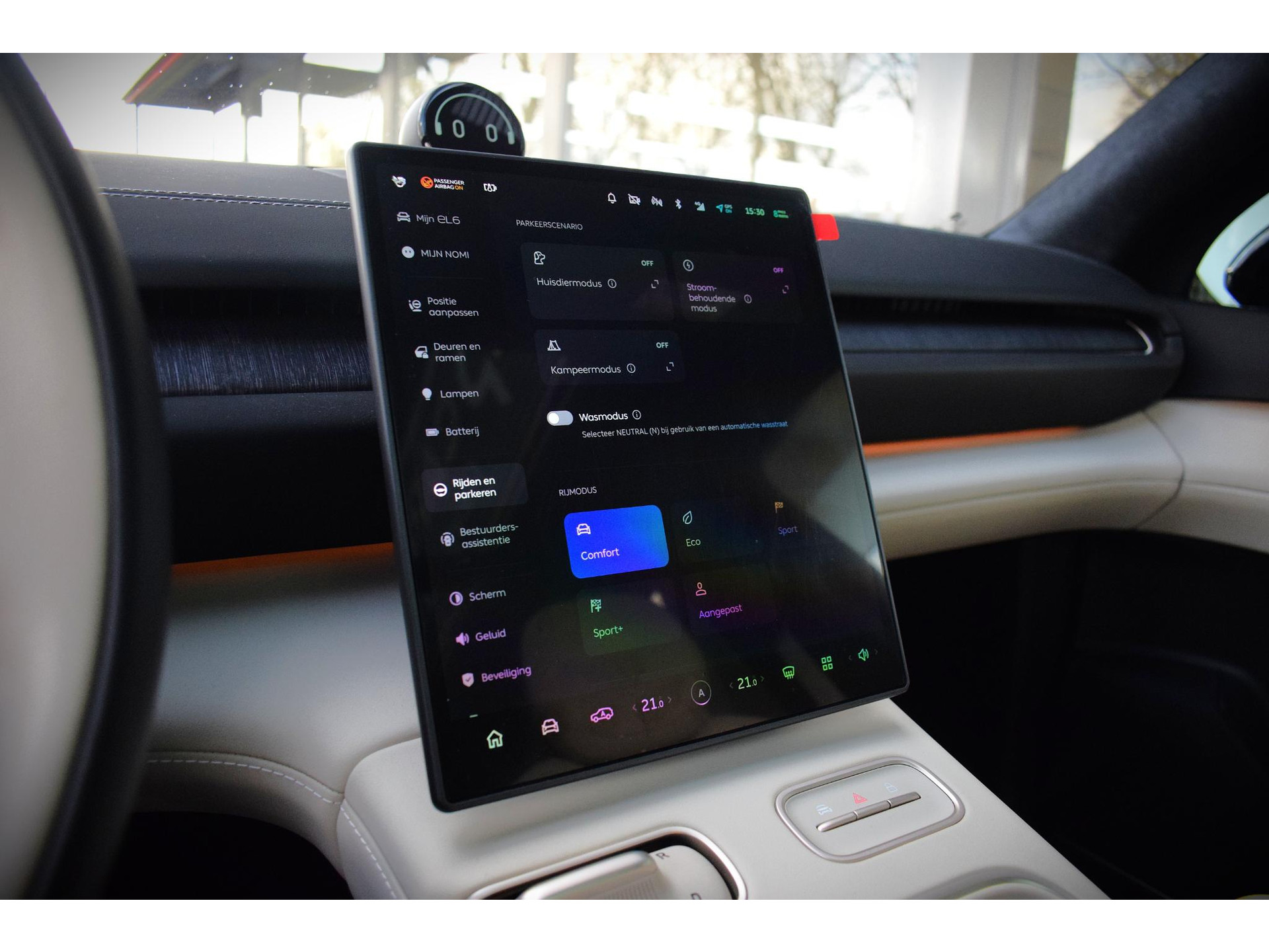 De nieuwste veiligheidssystemen komen in deze NIO EL6 samen. Route- en rij-info aflezen van de voorruit? Met de head-up display hoeft u uw ogen geen seconde van de weg te halen! Verkeersbord-detectie herkent verkeersborden en toont deze op het instrumentarium van de auto. Een camera houdt de juiste koers binnen de rijstrook in de gaten en het Lane-keeping systeem corrigeert bij afwijkingen. Bovenop deze veiligheidsfeatures heeft deze NIO bovendien dodehoekdetector detectiesysteem, forward collision warning system, hill hold functie, autonoom remsysteem en bandenspanningcontrolesysteem.