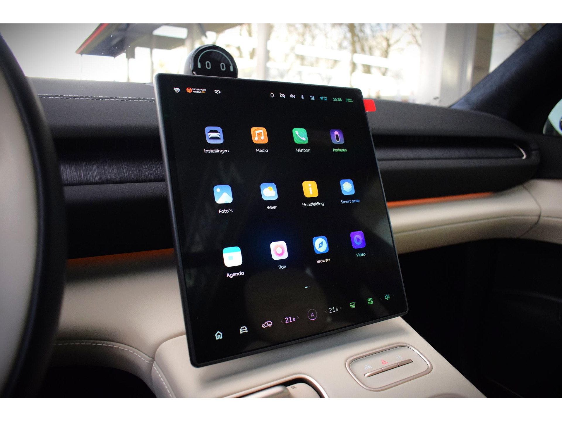 In één oogopslag zijn alle vitale functies afleesbaar dankzij het digitale dashboard. Door het combineren van beelden van vier camera's, biedt de 360 graden camera een naadloos en gedetailleerd beeld van de hele omgeving rondom deze auto. Met adaptive cruise control houdt de auto zelfstandig afstand tot uw voorligger. Een veiligheidsverhogende optie waarmee u comfortabel onderweg bent. De jeugd is niet los te maken van hun smartphone, en dat zie je ook aan deze jonge auto. Via een speciale app staat u overal en altijd in contact met uw vierwieler. Superhandig! Soms wil je goed geluid kunnen voelen! Het high performance audiosysteem bedient u op uw wenken. De NIO is standaard voorzien van: full map navigatiesysteem, achteropkomend verkeer waarschuwing, kruisend verkeer detectie, electronic climate control, draadloos opladen en DAB ontvangst.