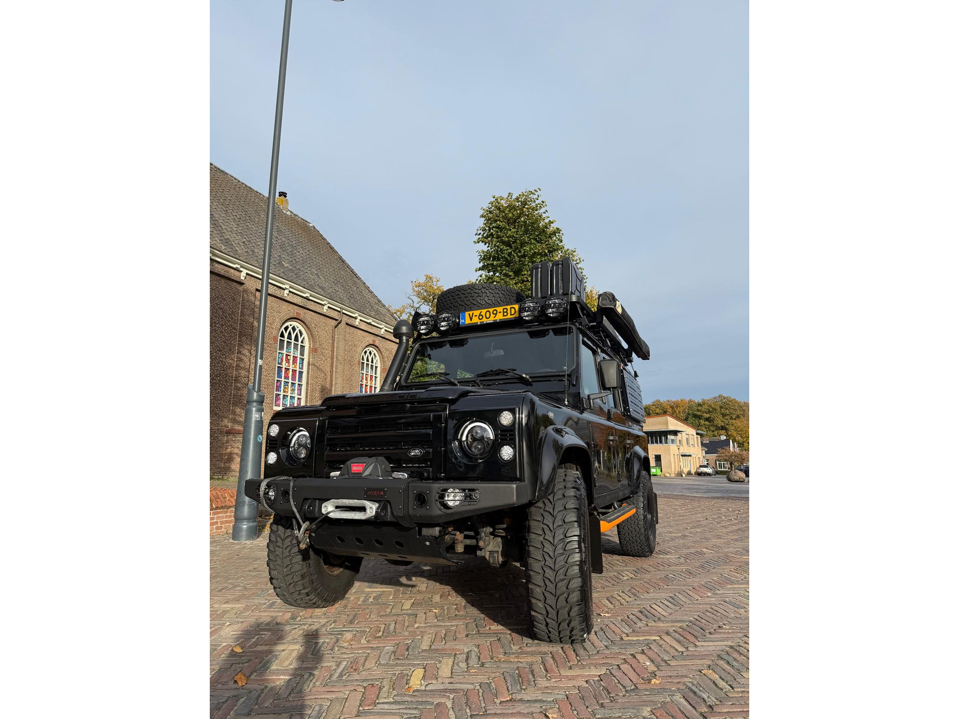 Deze Defender is gemaakt voor rijden in het donker en werken op locatie
