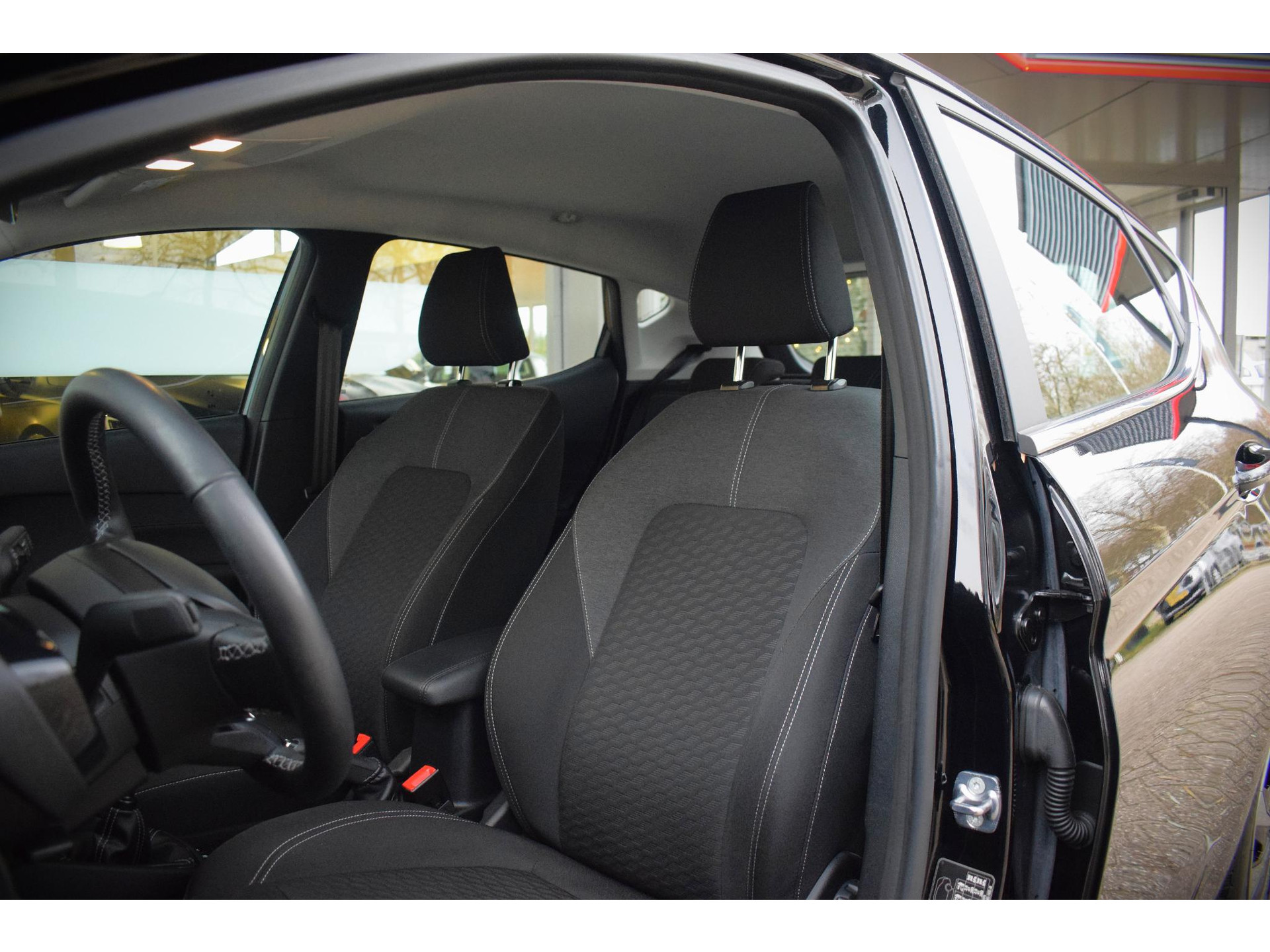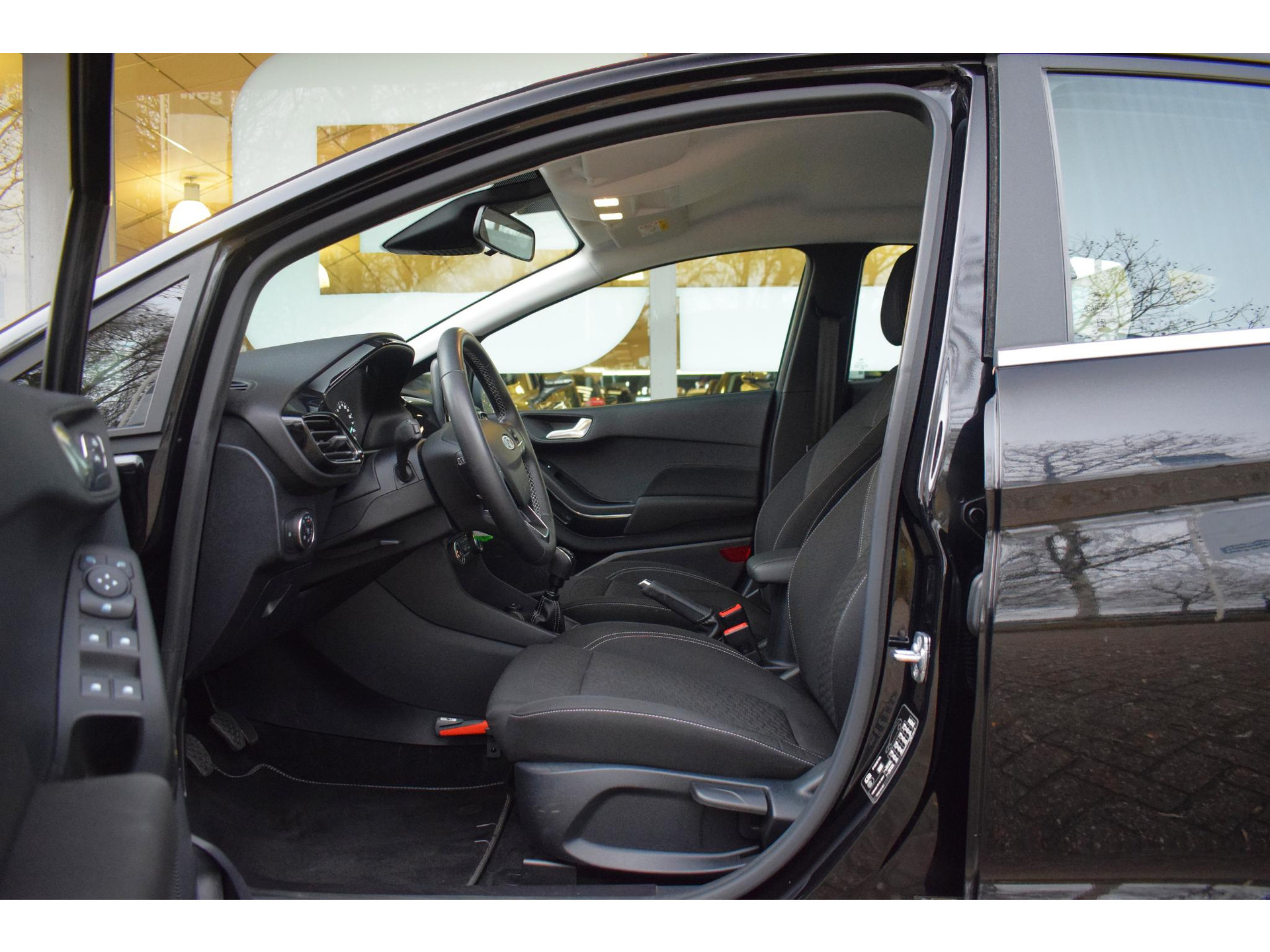 Met Connected Services wordt iedere rit nóg veiliger. Onderweg kunt u veilig genieten van het audiosysteem met DAB-radio. Want in deze Ford bedient u het vanaf het stuurwiel of met gesproken opdrachten. Natuurlijk is er ook automatische airconditioning aanwezig. U kunt bij het inparkeren natuurlijk niet aan alle kanten ogen hebben. Daarom is deze Ford Fiesta voorzien van parkeersensoren! Met cruise control rijdt u rustiger en meer ontspannen, en bovendien zuiniger. En deze auto heeft ook centrale deurvergrendeling met afstandsbediening, boordcomputer en verstelbaar stuur als standaard uitrusting.