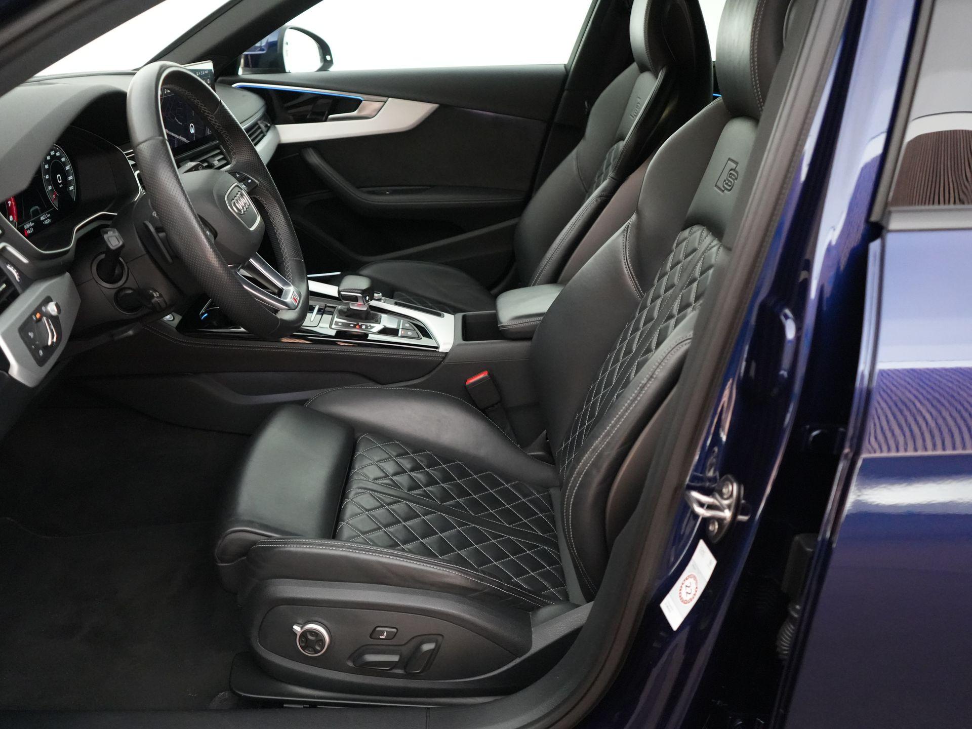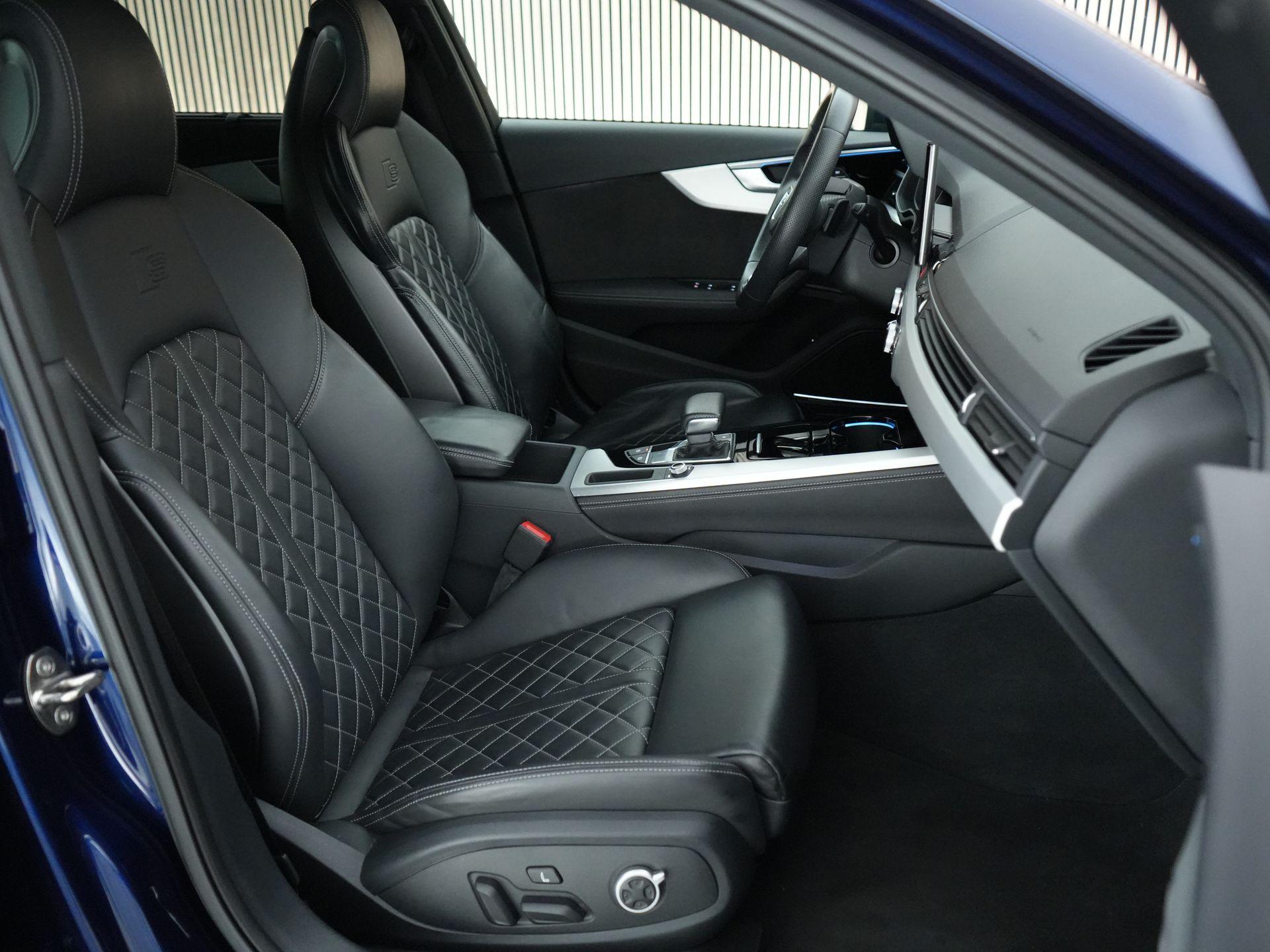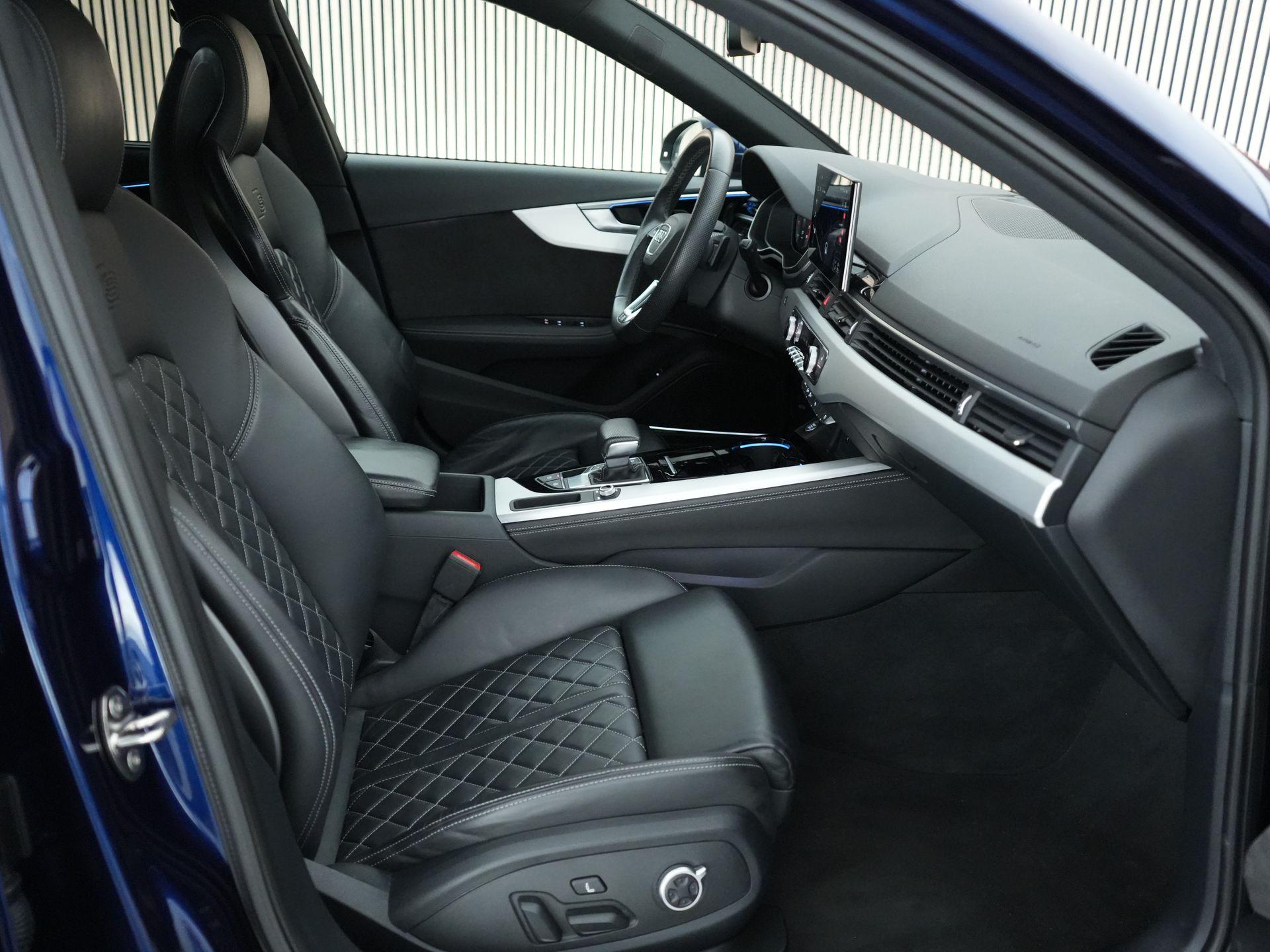 Ook qua uitvoering zit het bij deze auto goed. De combinatie van Navarra Blue metallic met het S line pakket en het Black Appearance pakket geeft de auto een sportieve uitstraling. Binnenin vallen direct de sportstoelen plus met fijn nappaleder en S-logo op, samen met de zwarte hemelbekleding en aluminium interieurafwerking.