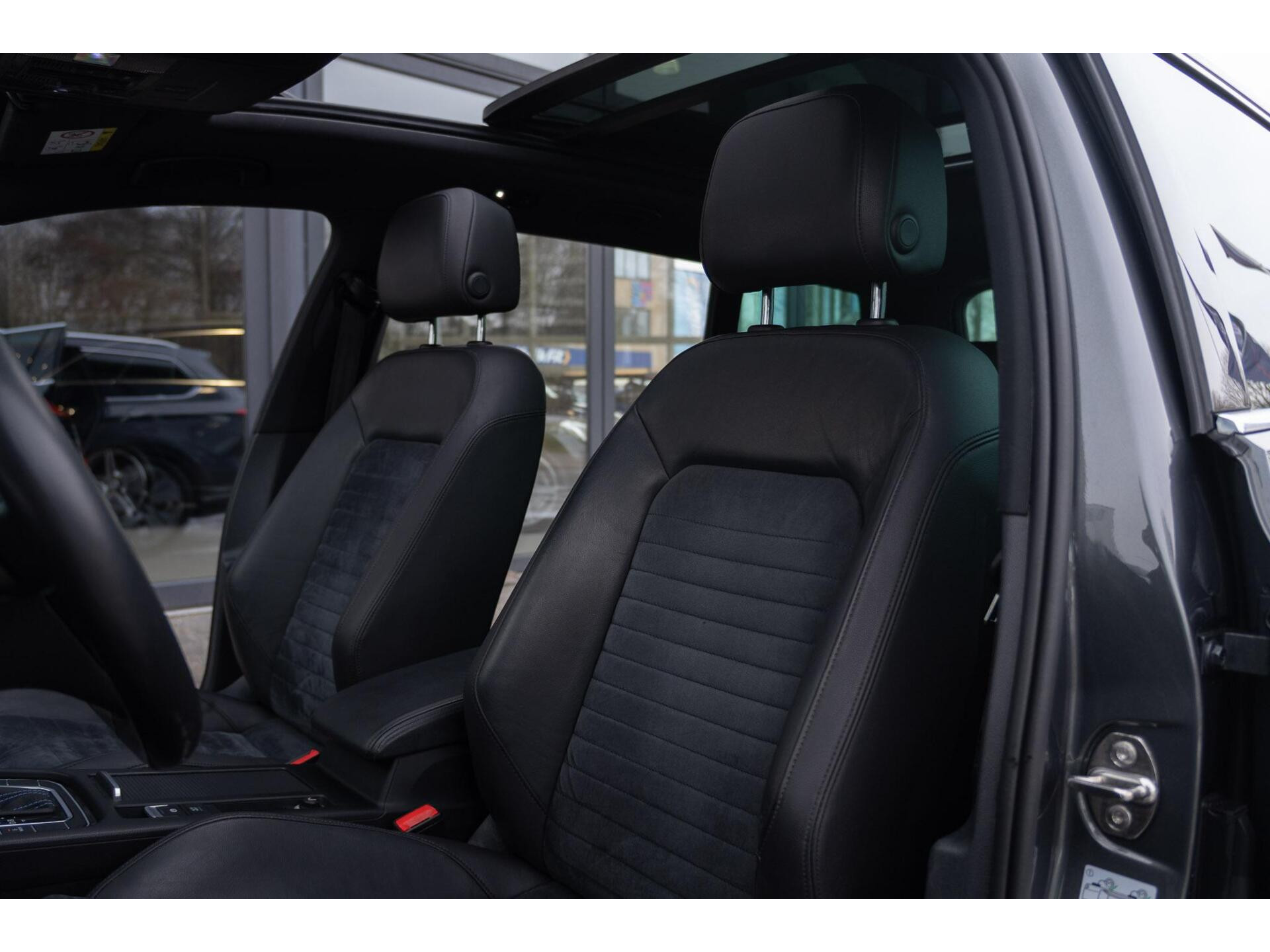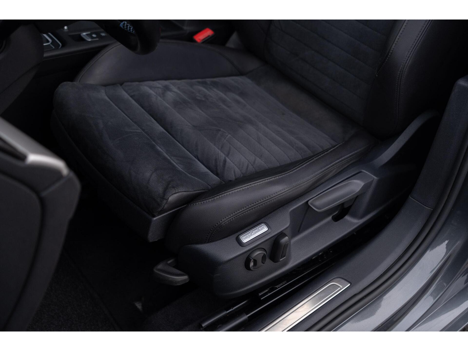 - Zitvlakmiddenbanen in Alcantara® (suède-look), binnenzijde stoelwangen en bovenzijde middenarmsteun in leder'Vienna'