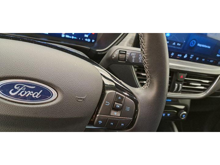 Het personaliseren van uw cockpitinterface is mogelijk met het digitale dashboard in deze auto. Het inventieve 360 graden camerasysteem op deze auto heeft de functie om u assistentie te bieden in nauwe ruimtes en straten, waar het achteruit rijden vaak een uitdaging is. Met adaptive cruise control houdt deze auto automatisch afstand tot uw voorligger. Als u regelmatig met een aanhanger of een fietsendrager op pad bent, is de afneembare trekhaak een praktische extra. Met uw smartphone maakt u overal contact met de auto. Remote services geven direct inzicht in uiteenlopende functies en zijn op afstand te activeren. Ook is de Ford uitgerust met: dashboard met spraakbediening, premium audiosysteem, full map navigatiesysteem, kruisend verkeer detectie, automatische airconditioning en draadloos opladen.