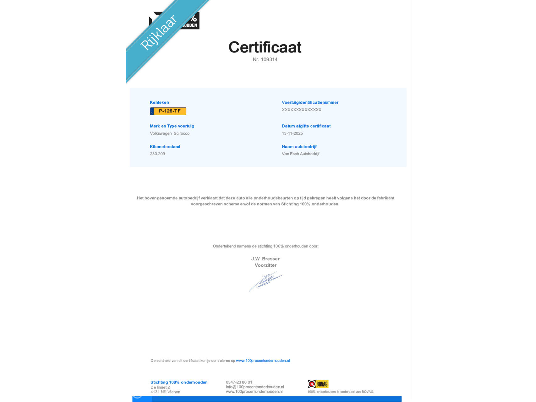 Onderhoudsboekjes: Aanwezig