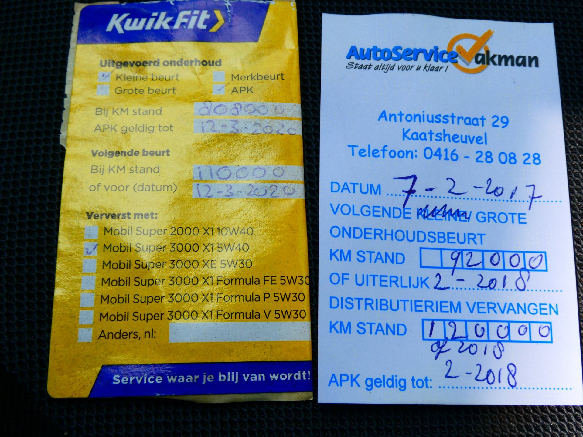Onderhoudsboekjes: Aanwezig