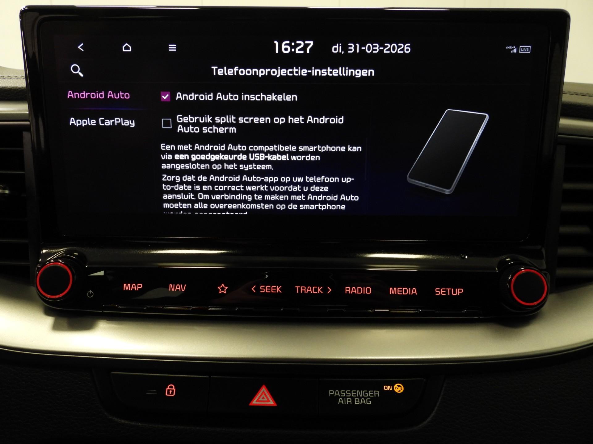 Met een gerust hart achteruitrijden? Dat kan, dankzij de achteruitrijcamera. Communiceren met uw auto? Dat gaat via remote services. Met uw smartphone maakt u waar dan ook contact om allerlei functies te checken of te activeren. Voor de veiligheid op de weg is het goed dat u uw ogen op de weg kunt houden en uw handen aan het stuur. Want het audiosysteem, met DAB-ontvangst, en het full map navigatiesysteem bedient u vanaf het stuurwiel en met spraakbediening. Nooit meer te warm of te koud. De climate control zorgt altijd voor de temperatuur die u kiest. In deze Kia kunt u zich concentreren op het verkeer, terwijl de auto de omgeving voor u in de gaten houdt. Een automatisch inschakelbare verlichting zorgt dat de verlichting aangaat als het donkerder wordt - in tunnels bijvoorbeeld - en de regensensor schakelt de ruitenwissers in als het nodig is. U hoeft er niets aan te doen. Deze auto is voorzien van automatisch dimmende binnenspiegel, isofix-aansluiting, centrale deurvergrendeling met afstandsbediening, bagage afdekhoes en lederen versnellingspook.