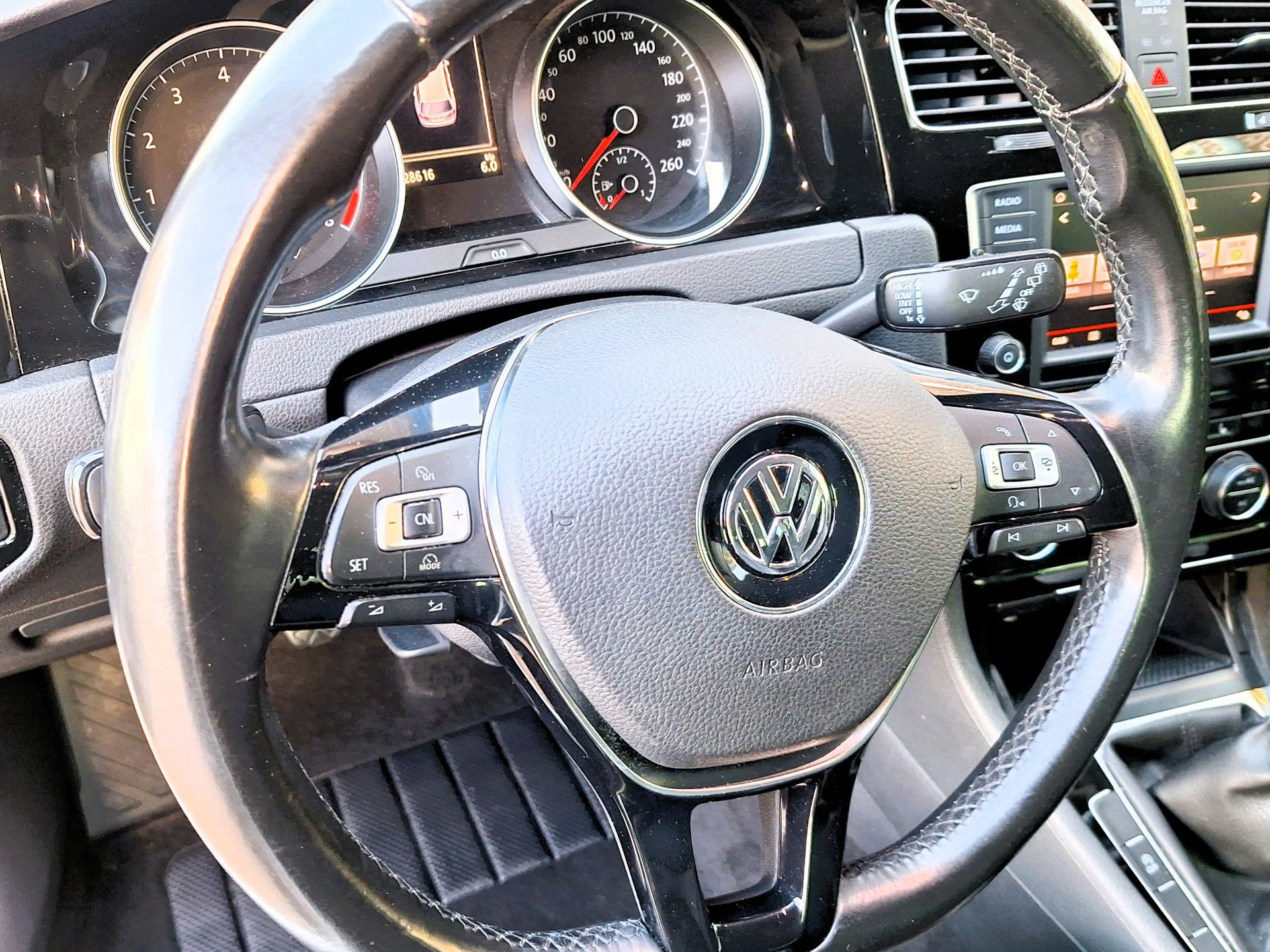 Zodra u naar de 'R' schakelt, gaat de achteruitrijcamera in werking en heeft u een perfect zicht op alles wat zich achter de auto afspeelt. Electronic climate control regelt volautomatisch de temperatuur. U kiest de gewenste temperatuur en het systeem doet de rest. In deze Volkswagen kunt u zich concentreren op het verkeer, terwijl de auto de omgeving voor u in de gaten houdt. Een automatisch inschakelbare verlichting zorgt dat de verlichting aangaat als het donkerder wordt - in tunnels bijvoorbeeld - en de regensensor schakelt de ruitenwissers in als het nodig is. U hoeft er niets aan te doen. De voordelen van de aanwezige cruise control hoeven we niet uit te leggen. Een mooie, constante snelheid - niet te snel, niet te langzaam. Precies goed. En deze auto heeft ook navigatiesysteem, multifunctioneel lederen stuur, DAB ontvangst, automatisch dimmende binnenspiegel, centrale deurvergrendeling met afstandsbediening en boordcomputer als standaard uitrusting.