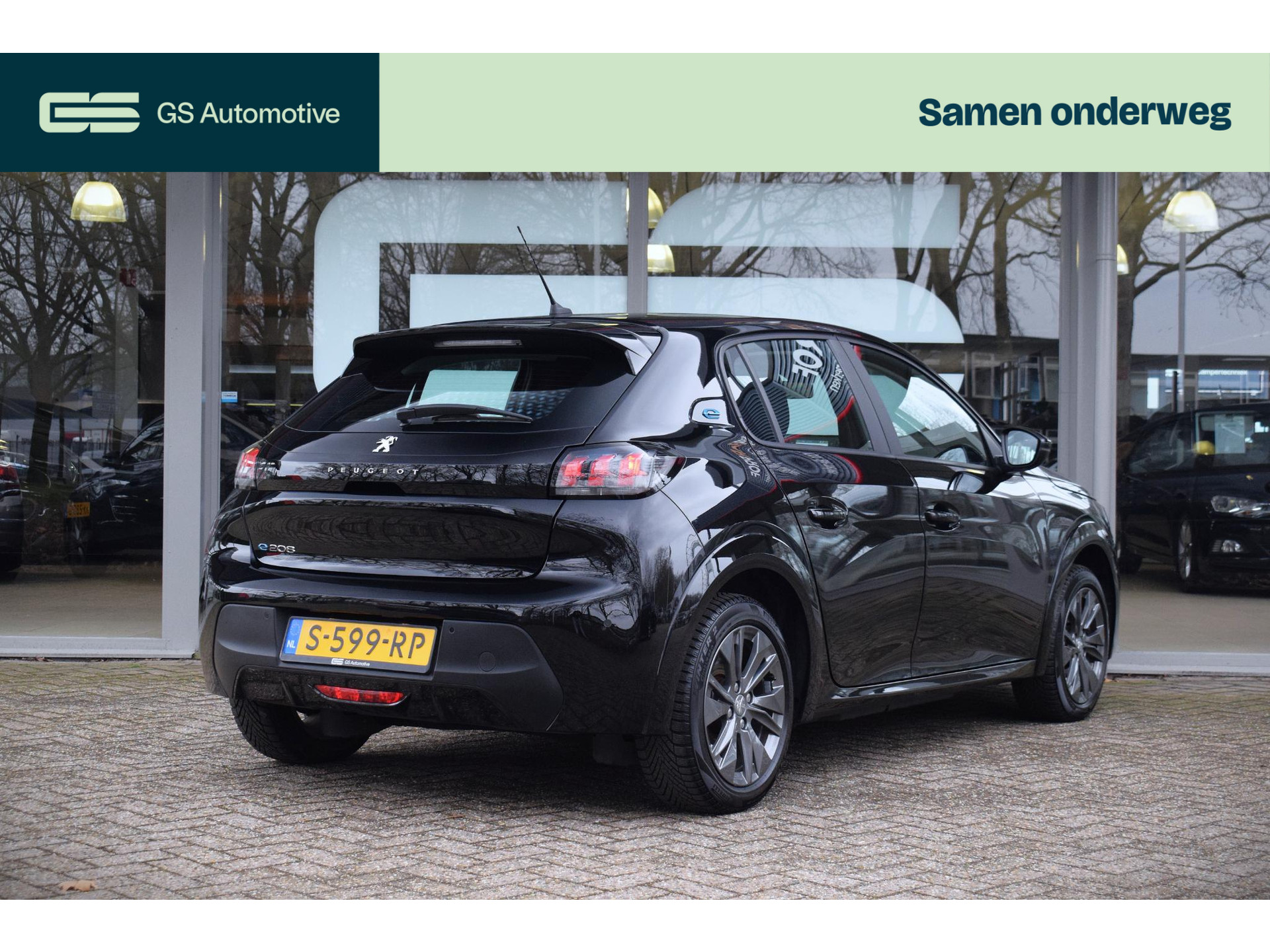 Locatie, motorconditie, storingen... via Connected Services krijgt u alle vitale info over de auto door. Ook handig bij pech! Met het full map navigatiesysteem kiest u de snelste route naar uw eindbestemming. Automatische airconditioning regelt volautomatisch de temperatuur. U kiest de gewenste temperatuur en het systeem doet de rest. Het geluidssyteem in deze Peugeot e-208 is regelbaar met behulp van de audiobediening op het stuur. Voor storingvrije digitale radio-ontvangst zorgt de DAB-ontvanger. Natuurlijk behoren parkeersensoren achter, regensensor, cruise control, automatisch dimmende binnenspiegel, lederen stuur en centrale deurvergrendeling met afstandsbediening ook tot de uitrusting van deze complete auto.