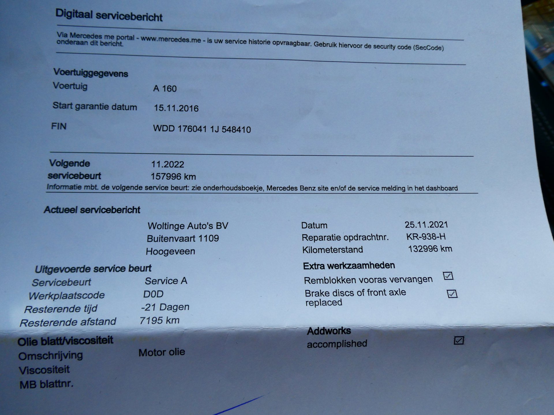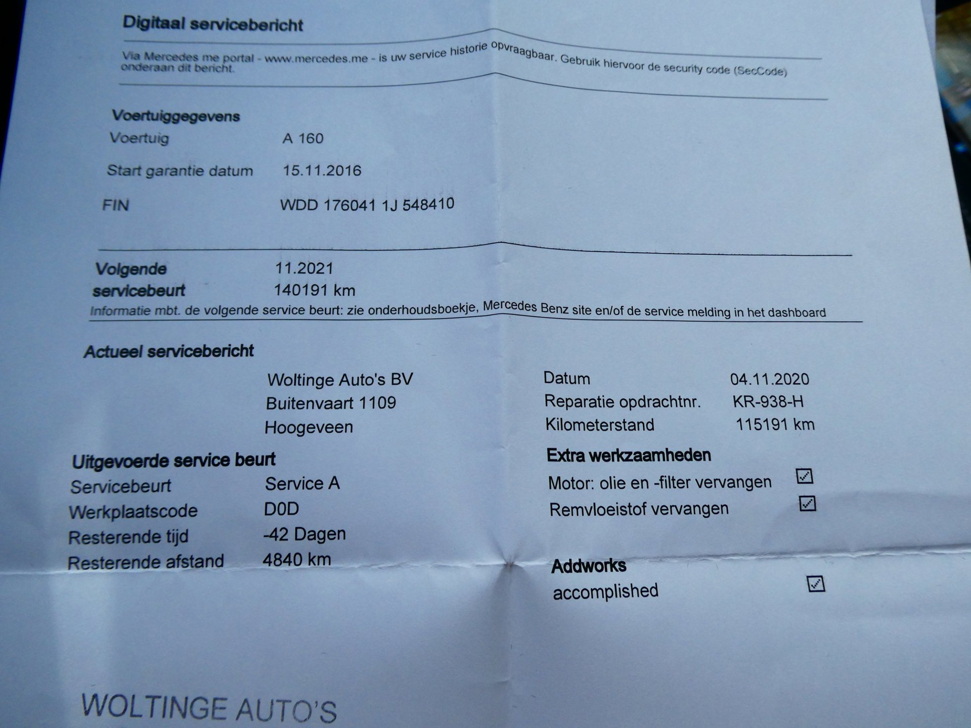 Onderhoudsboekjes: Aanwezig