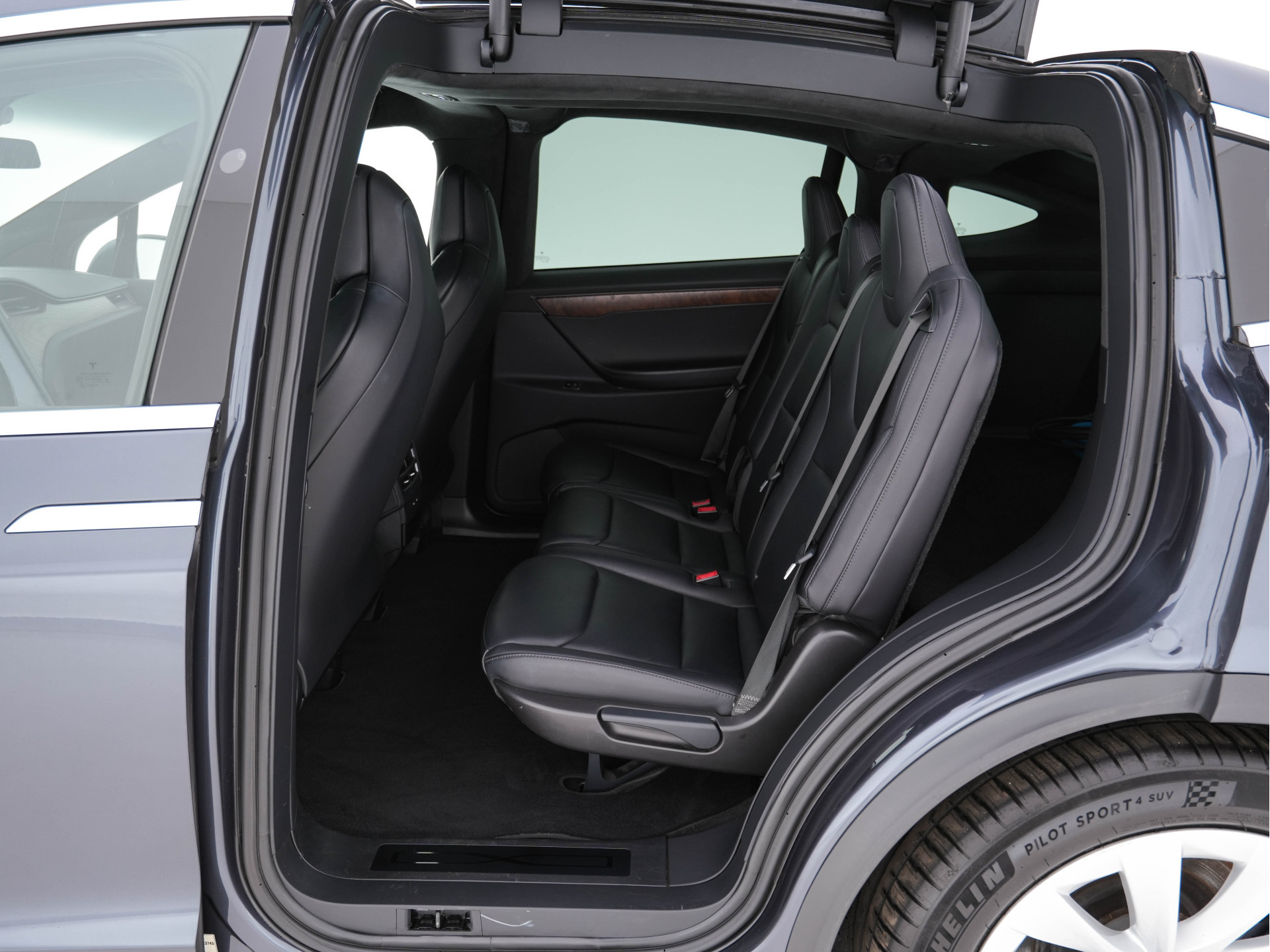 Stap in de toekomst van autorijden met deze Tesla Model X 100D AWD. Een volledig elektrische SUV die prestaties, ruimte en geavanceerde technologie perfect combineert. Uitgevoerd in de stijlvolle Steel Grey Metallic met een luxe zwart lederen interieur en houten inleg, straalt deze Model X klasse en kracht uit. Met zijn ruime actieradius, geavanceerd Autopilot-systeem en premium uitrusting is dit dé auto voor wie alleen het beste in duurzame mobiliteit wil.