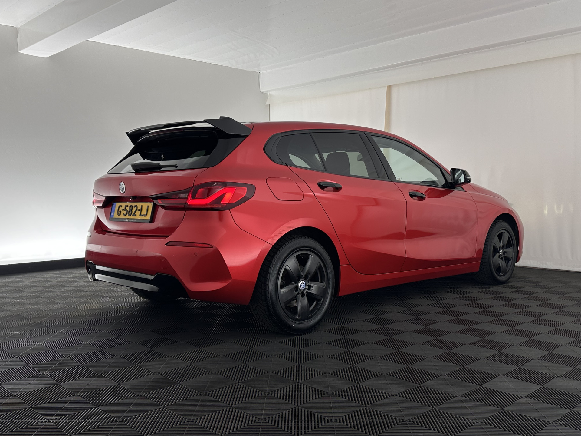 ⭐ BMW 1-serie 116D Executive Edition in Jet Black (Rood gewrapped) met stof ‘Grid’ Anthrazit bekleding | Sportief, Efficiënt & Comfortabel