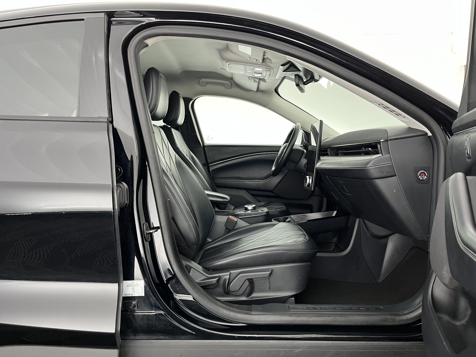 ⭐ Ford Mustang Mach-E RWD 75 kWh Automatic | in Absolute Shadow Black unir - Gray Metallic met Black Onyx Sensico vegan leder met witte "Diamond" Stiksel | Elektrisch, Comfort & Geavanceerde Technologie