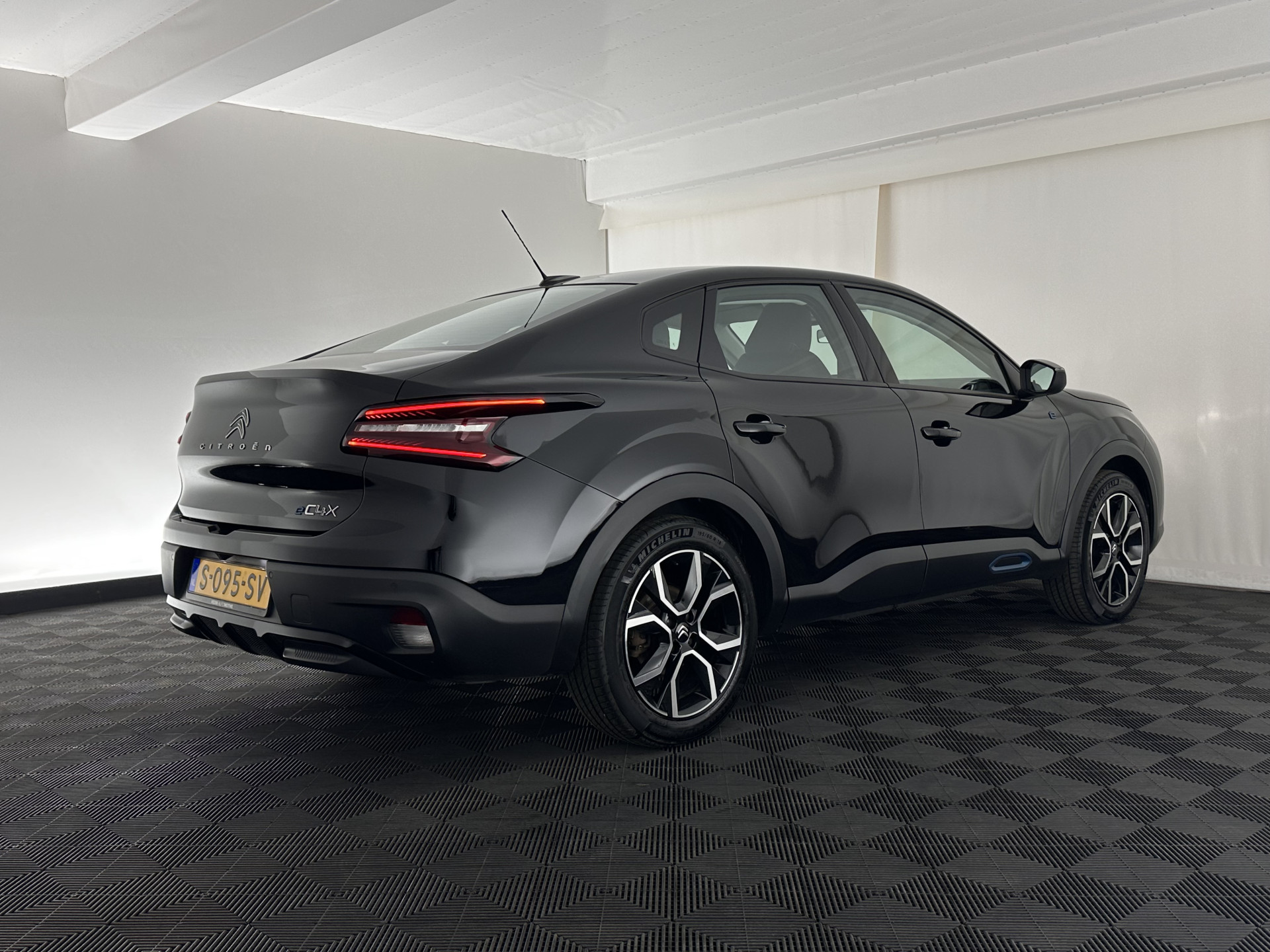 De Citroën Ë-C4 X Feel Pack combineert volledig elektrisch rijden met comfort, moderne technologie en een stijlvolle uitstraling. Uitgevoerd in Noir Perla Nera met half lederen Ambiance Urban Grey bekleding en Emeraude groene contraststiksels, biedt deze sedan een ontspannen en efficiënte rijervaring. Met een elektromotor van 100 kW, een accustatus (SOH) van 91% en 3-fase laden is deze Citroën ideaal voor zowel dagelijks gebruik als langere ritten.
