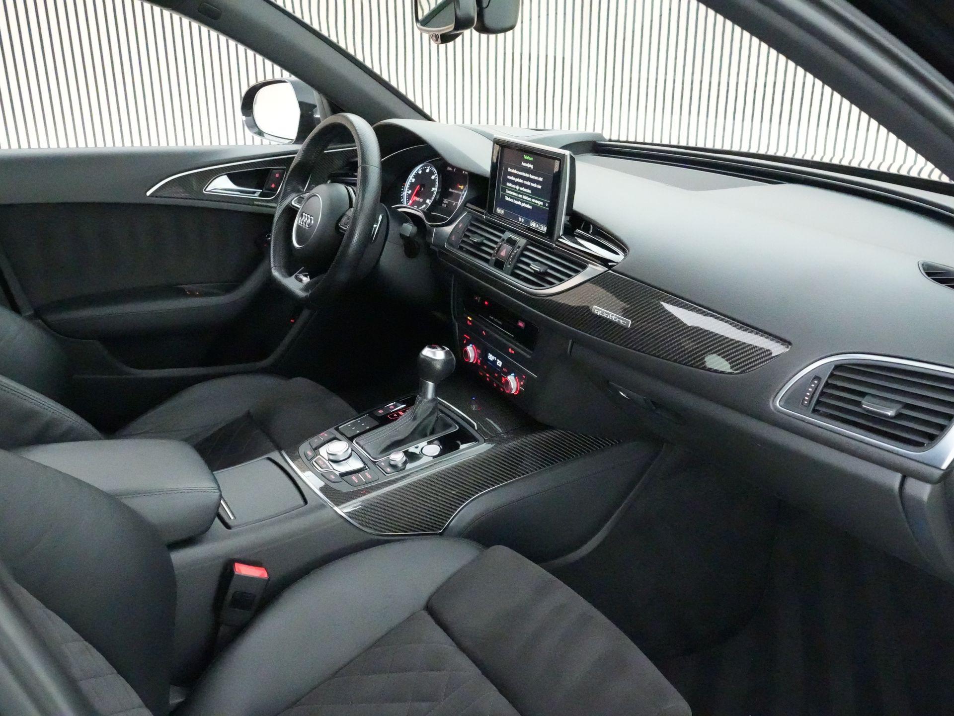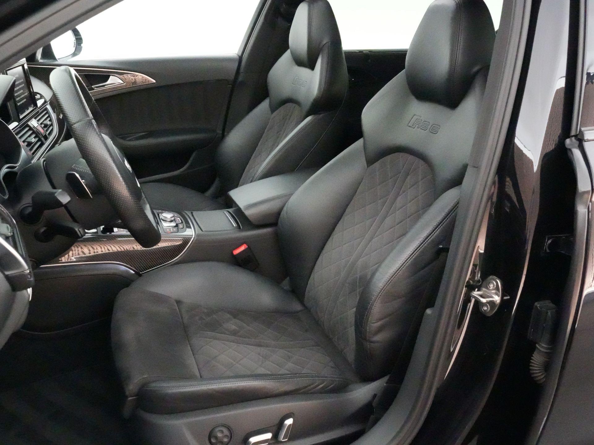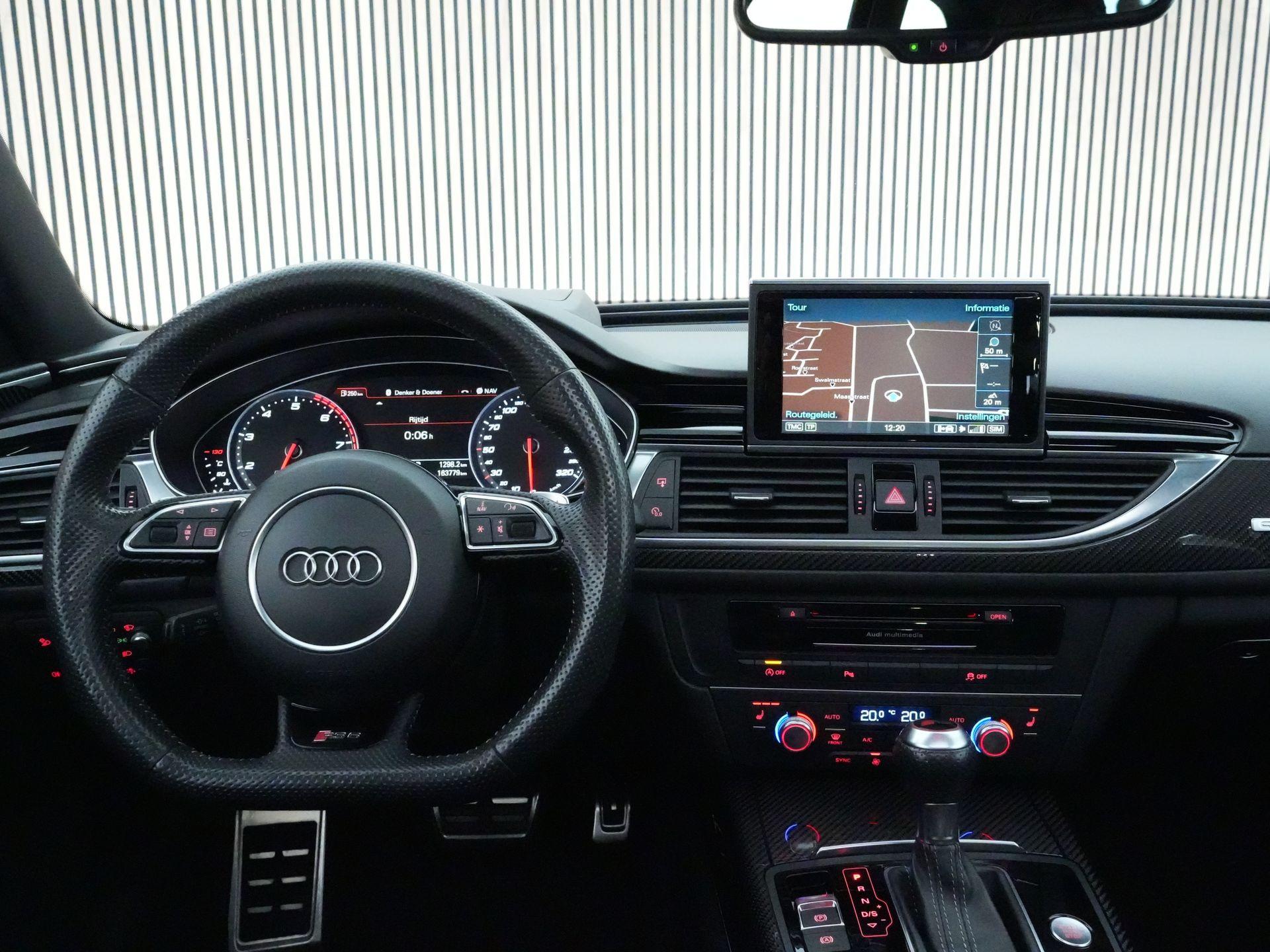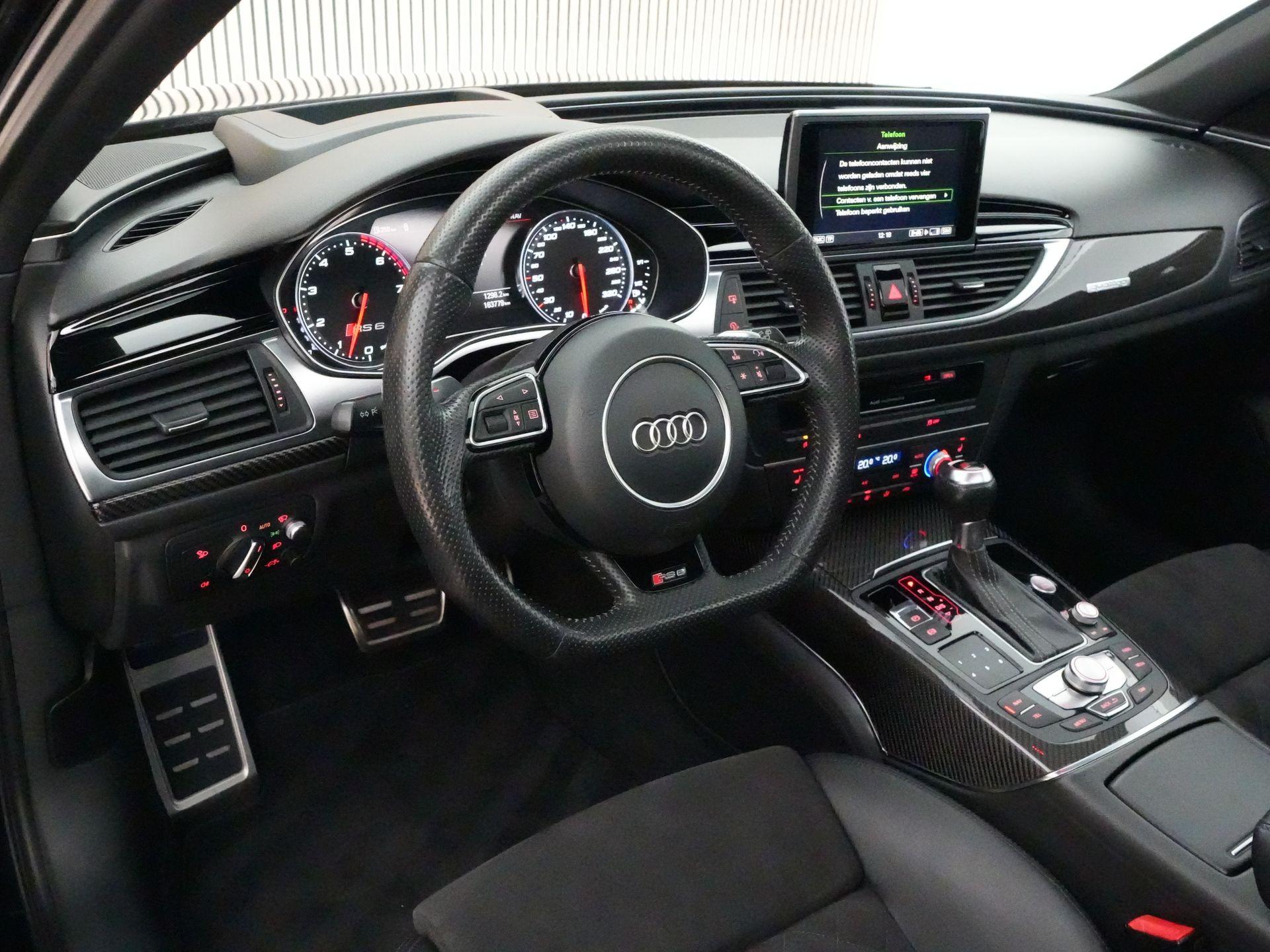 Qua uitrusting is deze RS6 voorzien van onder andere een head-up display, MMI navigatie plus met MMI touch, Audi connect, achteruitrijcamera, parkeerhulp plus, LED koplampen met grootlichtassistent, stoelverwarming voor, 4-zone automatische airconditioning, sfeerverlichting, privacy glass en een elektrisch bedienbare achterklep en is tevens uitgerust met een afneembare trekhaak.